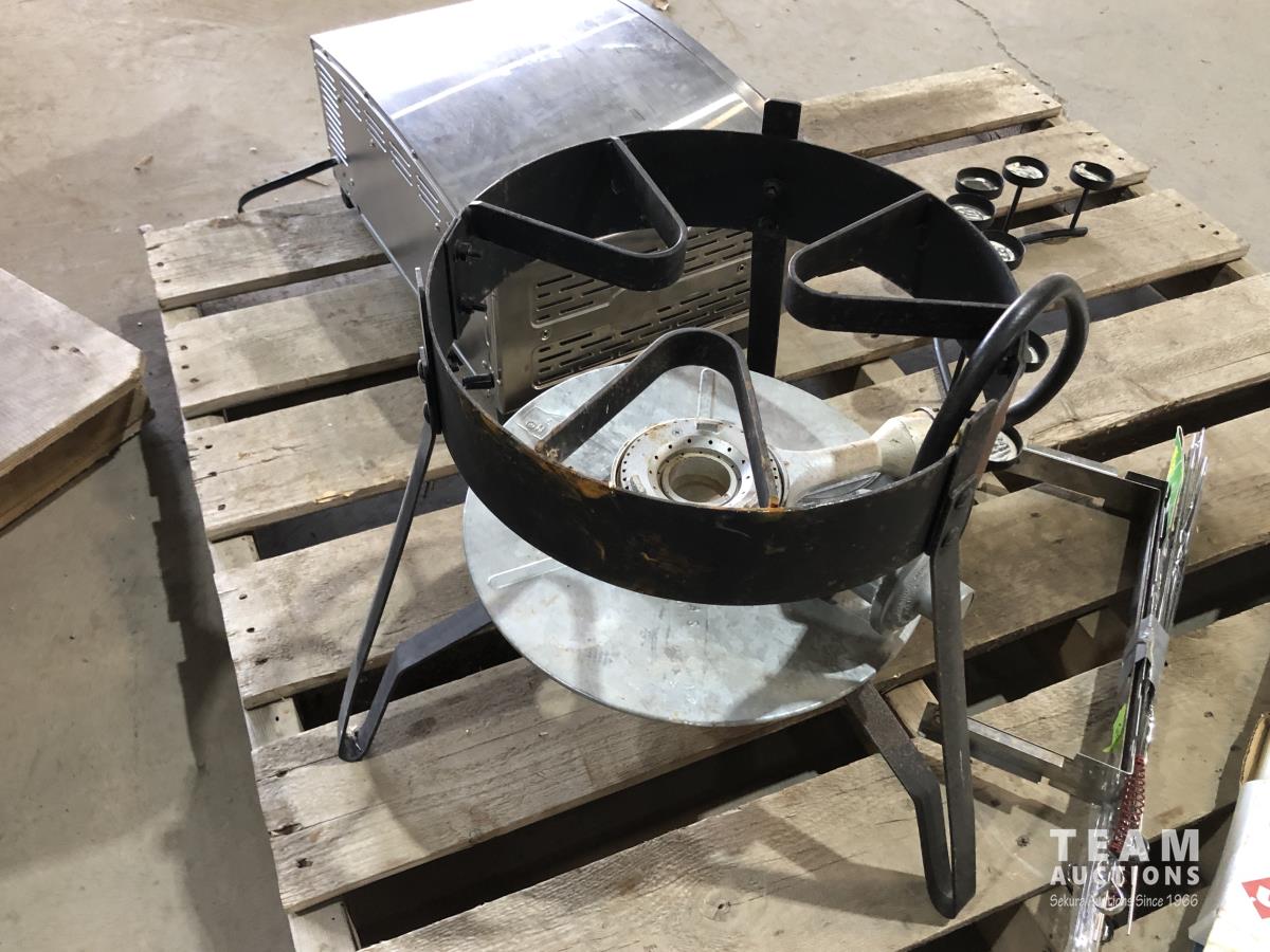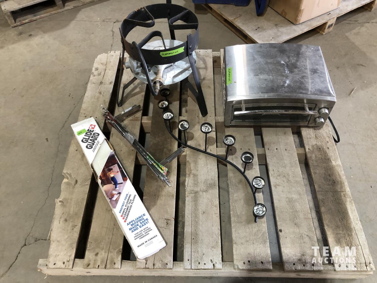 Gas camping stove, toaster forks, glide guard for moving appliances, 9 slot candle holder, candles, electric grill, deep fry pot