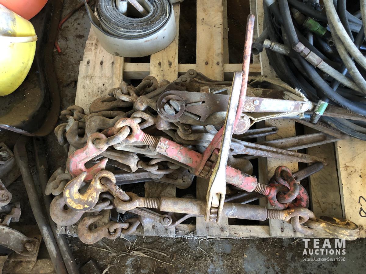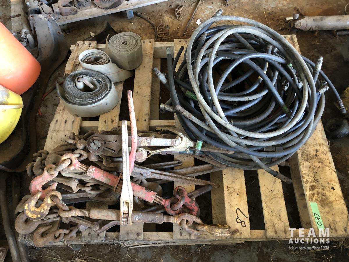 Qty of used hydraulic hoses, ratchet & snap boomers, 4 inch straps