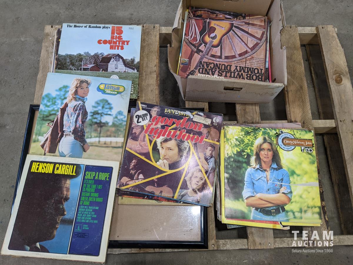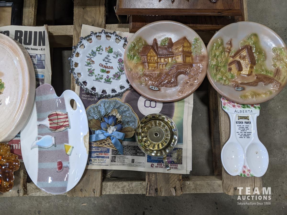 Records, picture frames, wall hangings, decorative plates, collector spoons