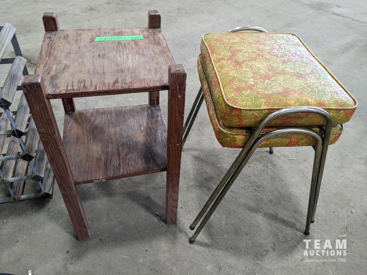 crock, stools, plant stand, wine rack, heater