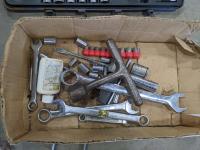 Horse shoes, pump, assorted tools, 52 piece socket wrench set (1/4 inch, 3/8 inch, 1/2 inch )