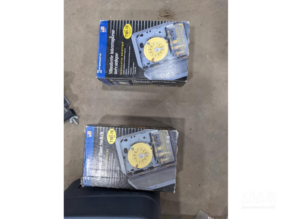 (2) Intermatic mechanical Time Switch, orange beacon light with cords and center console cupholders