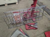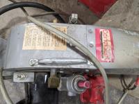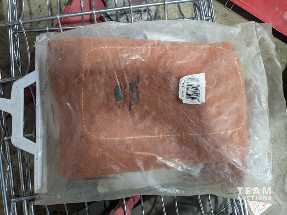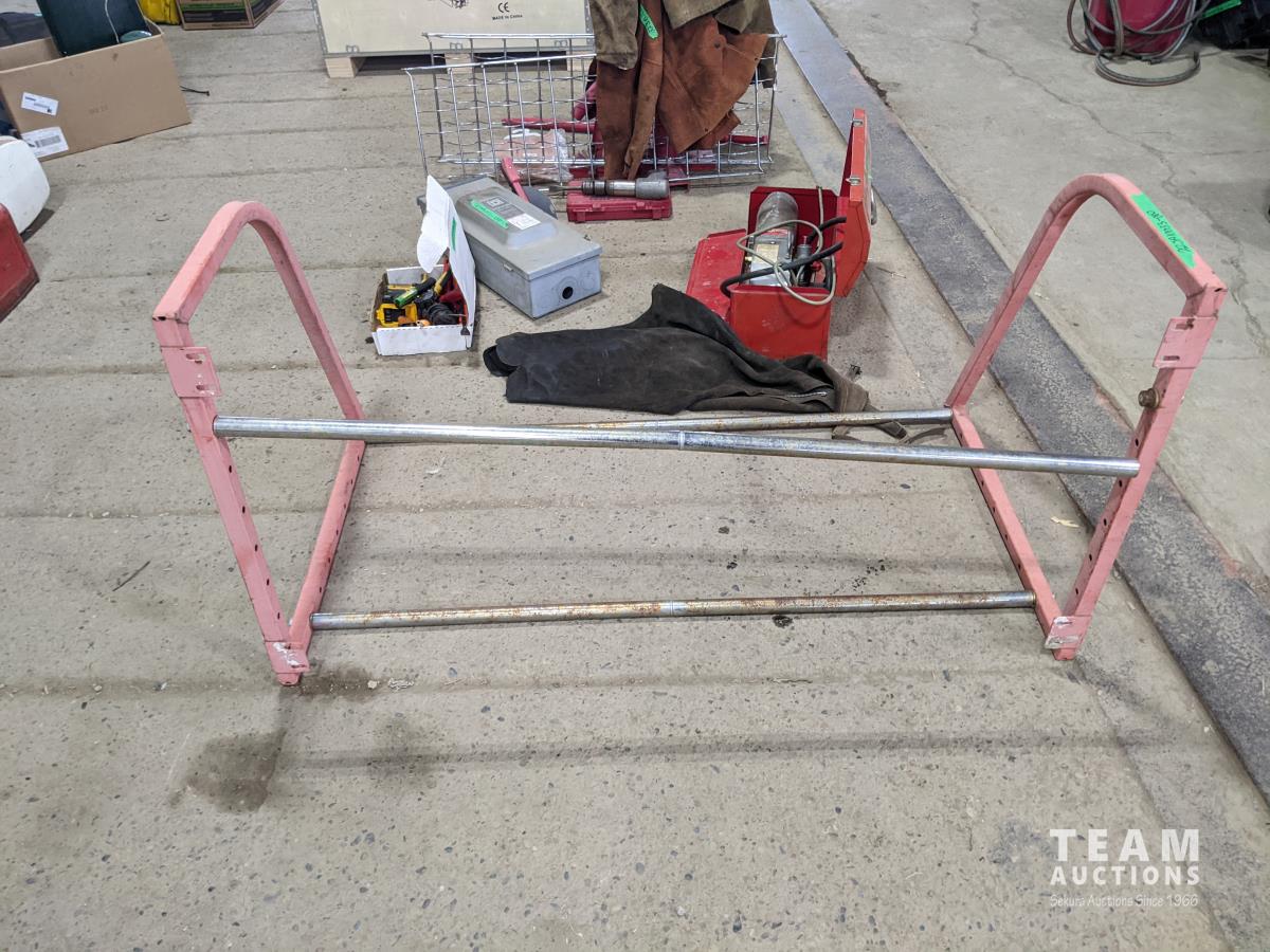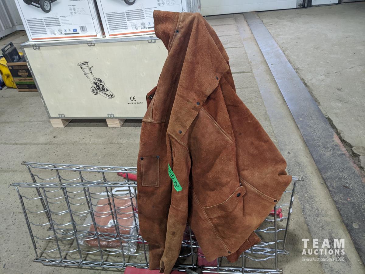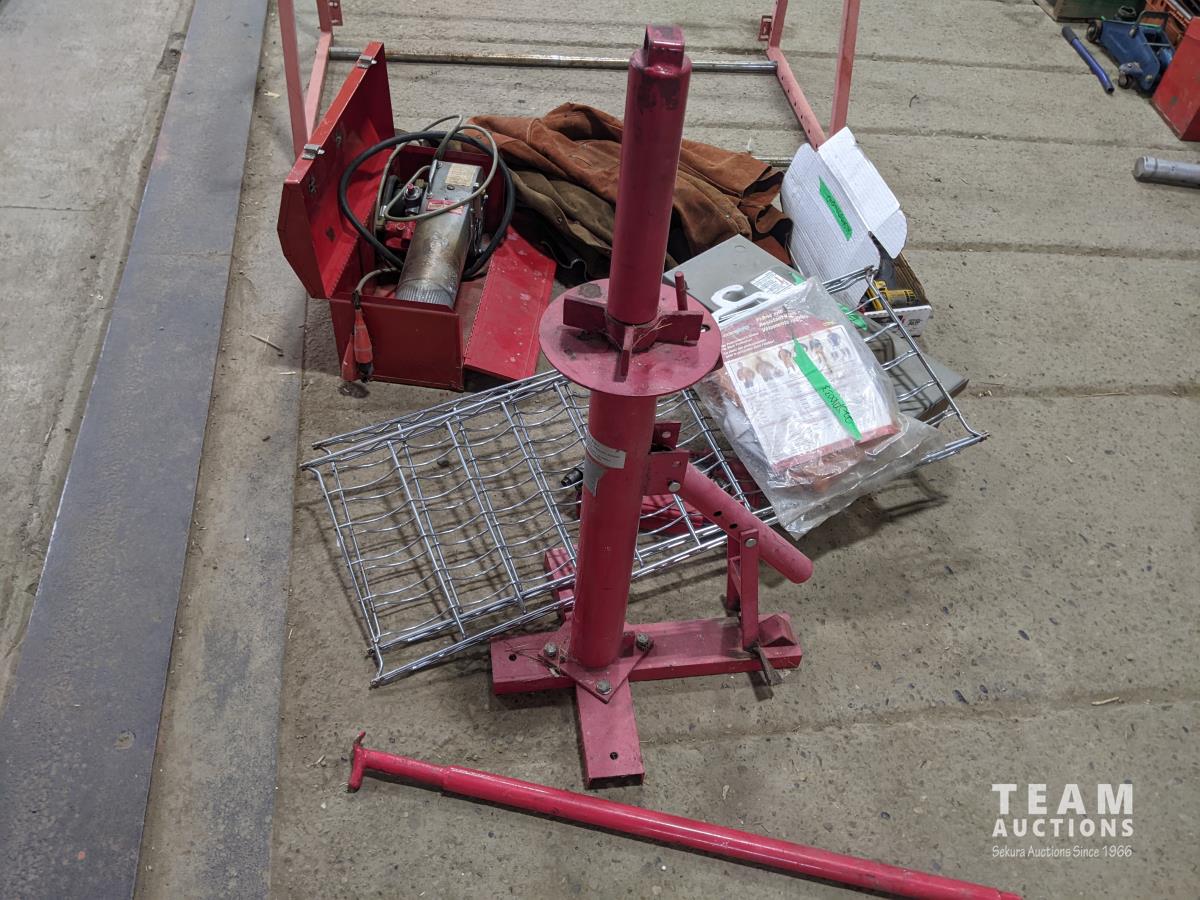Portable industrial Cana Heater, propane blower, power box, box of miscellaneous hand tools, welding chaps/jacket, rack