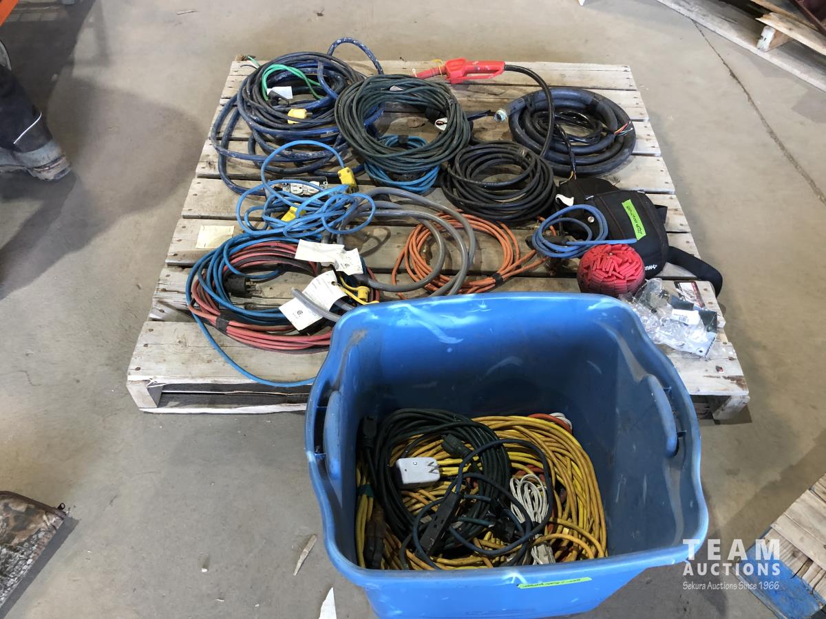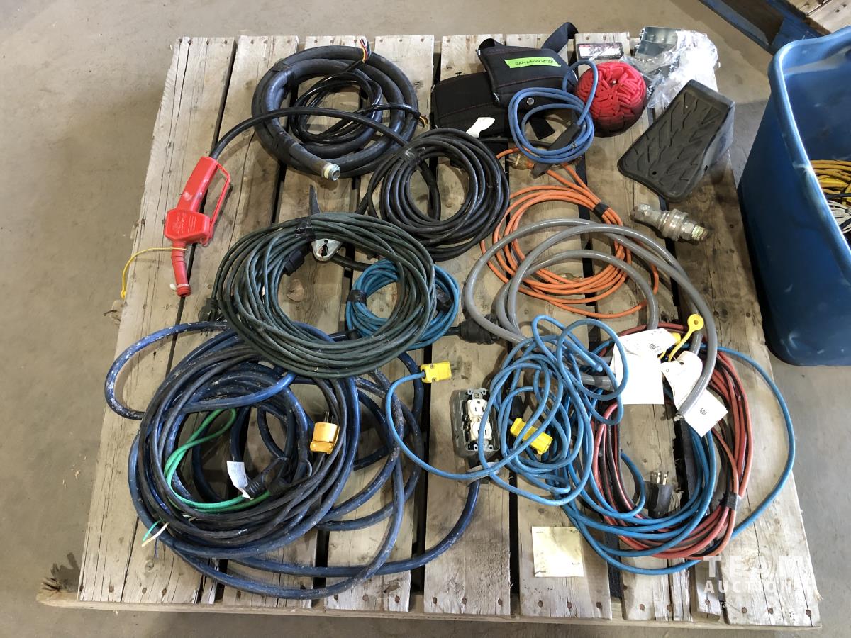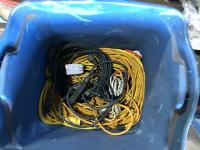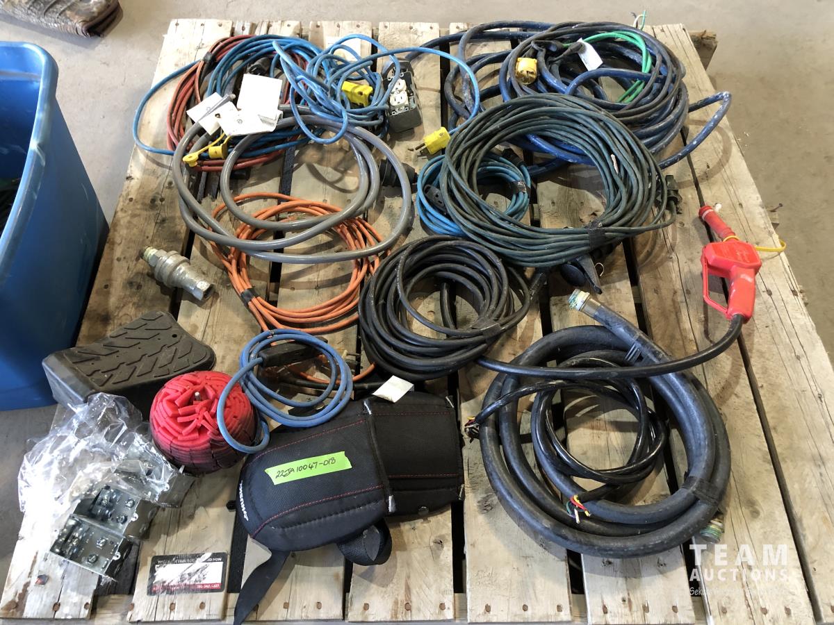 Qty of electric cables, buffing ball, knee pads, wheel chalk, (3) electric socket boxes