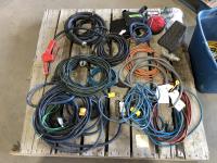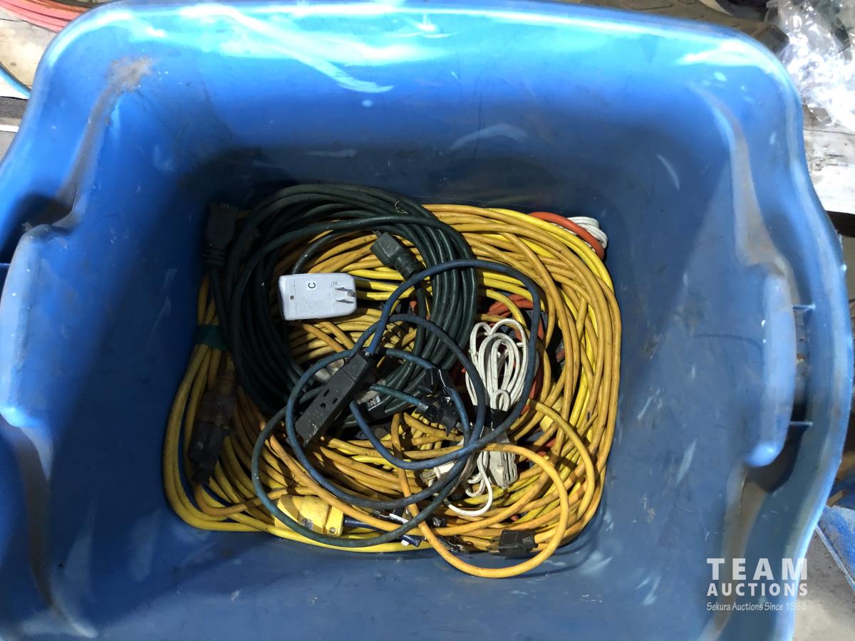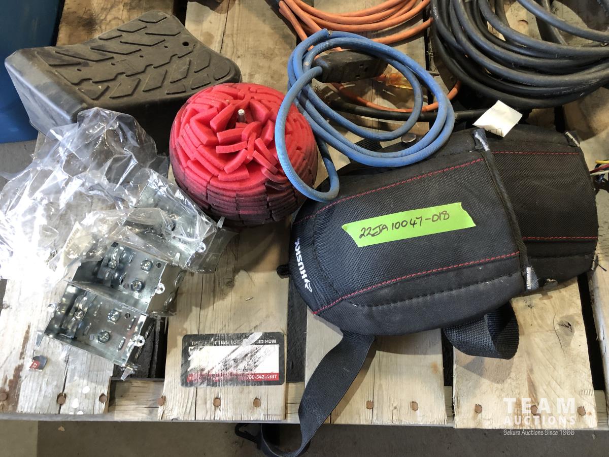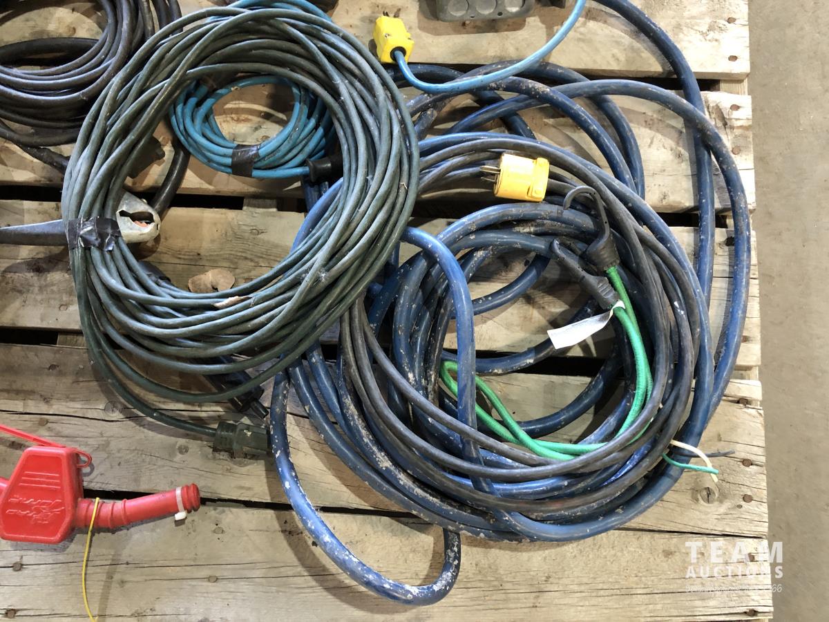 Qty of electric cables, buffing ball, knee pads, wheel chalk, (3) electric socket boxes