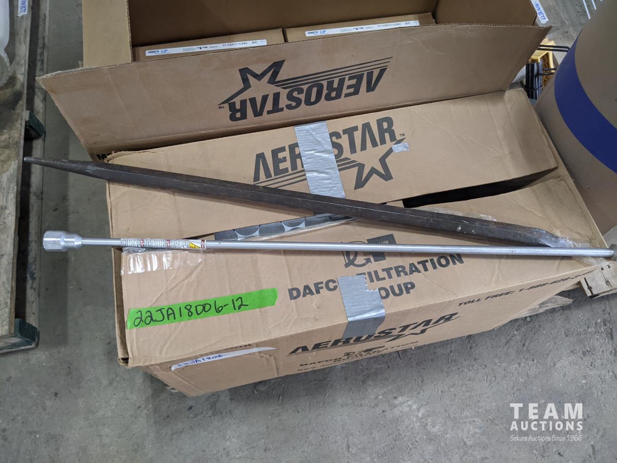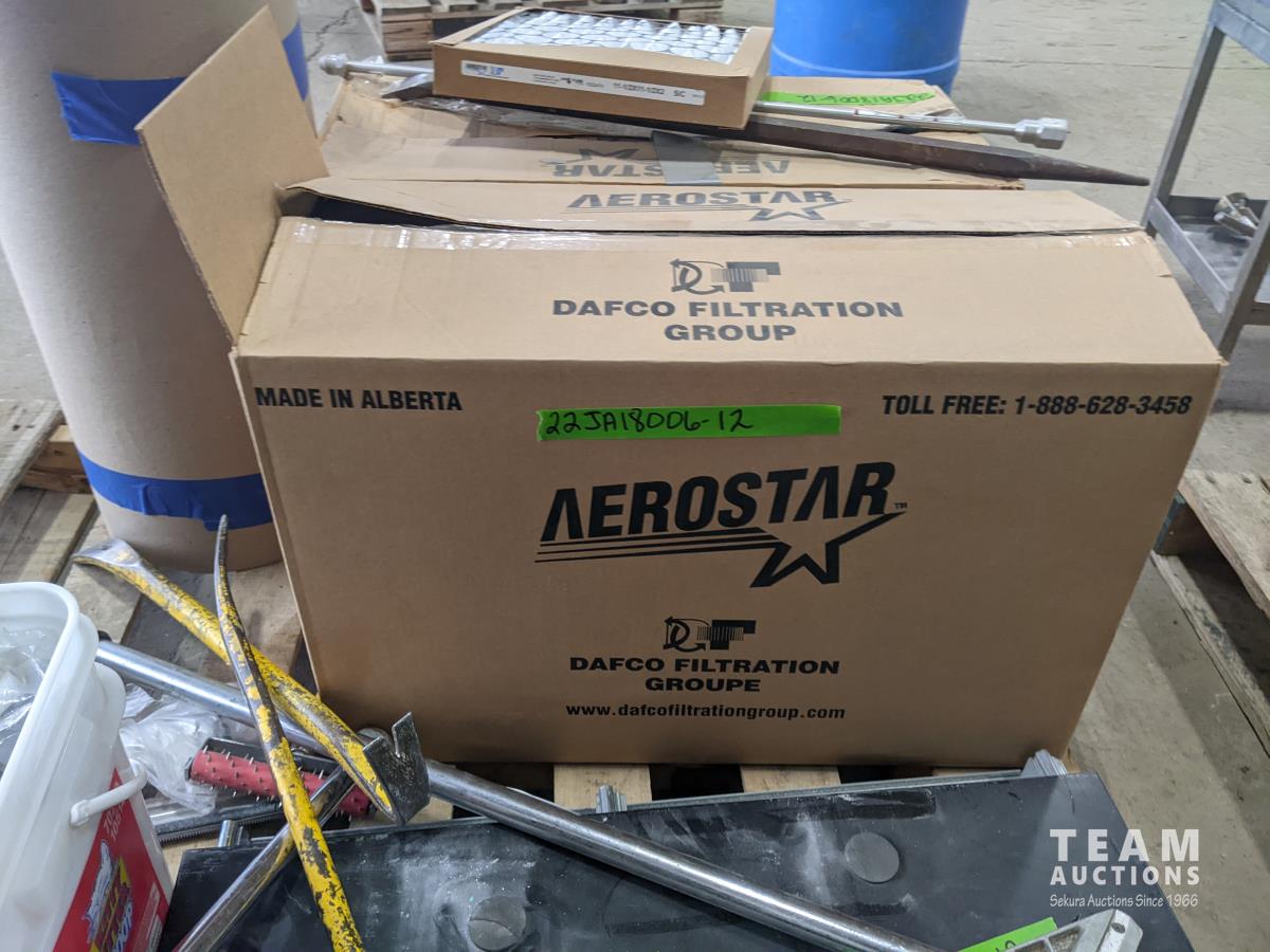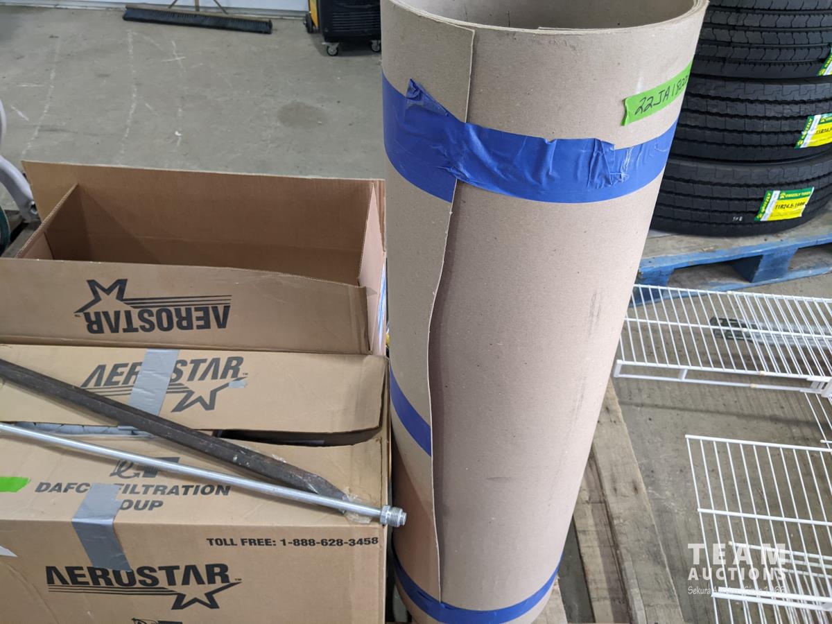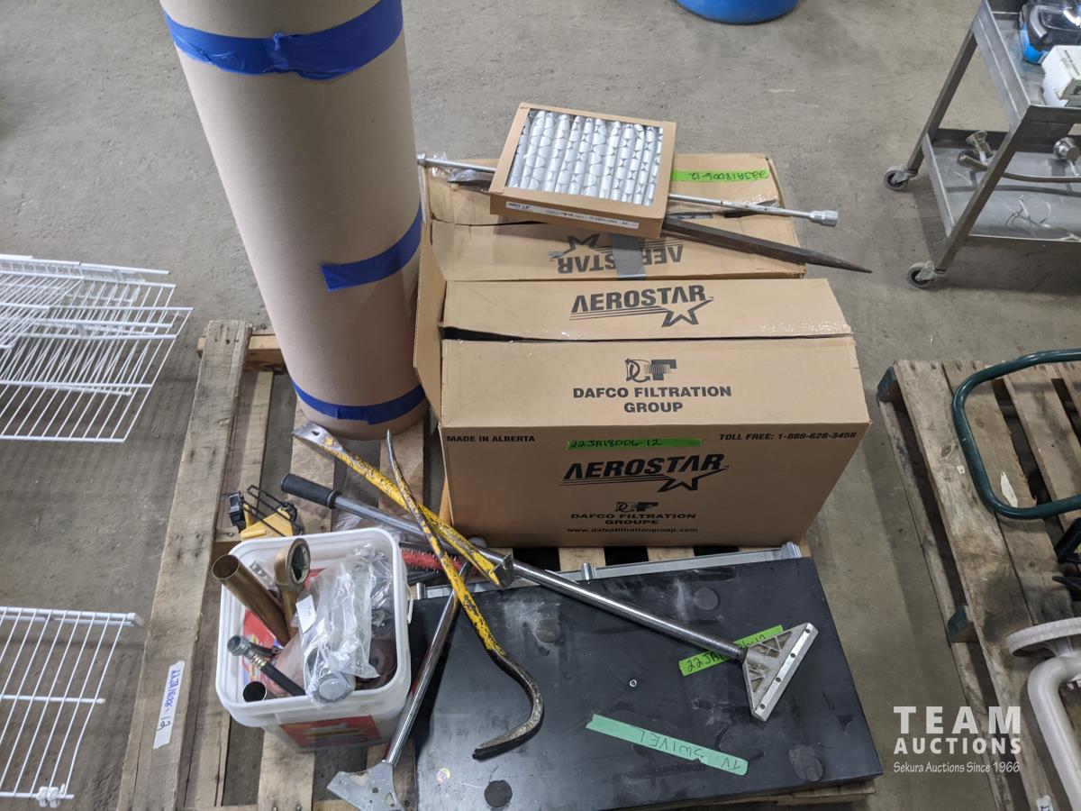 (2) boxes, furnace filters, TV swivel platform, crowbars, qty of miscellaneous items