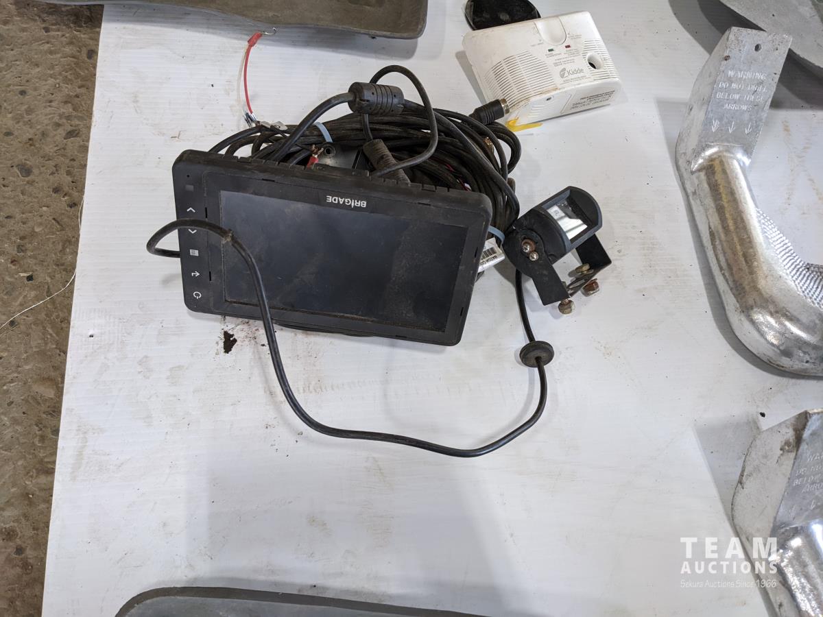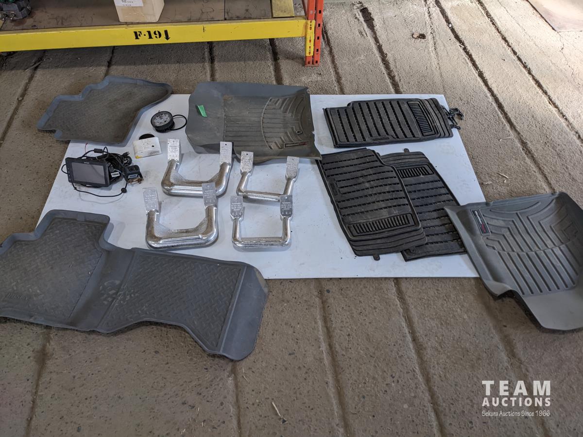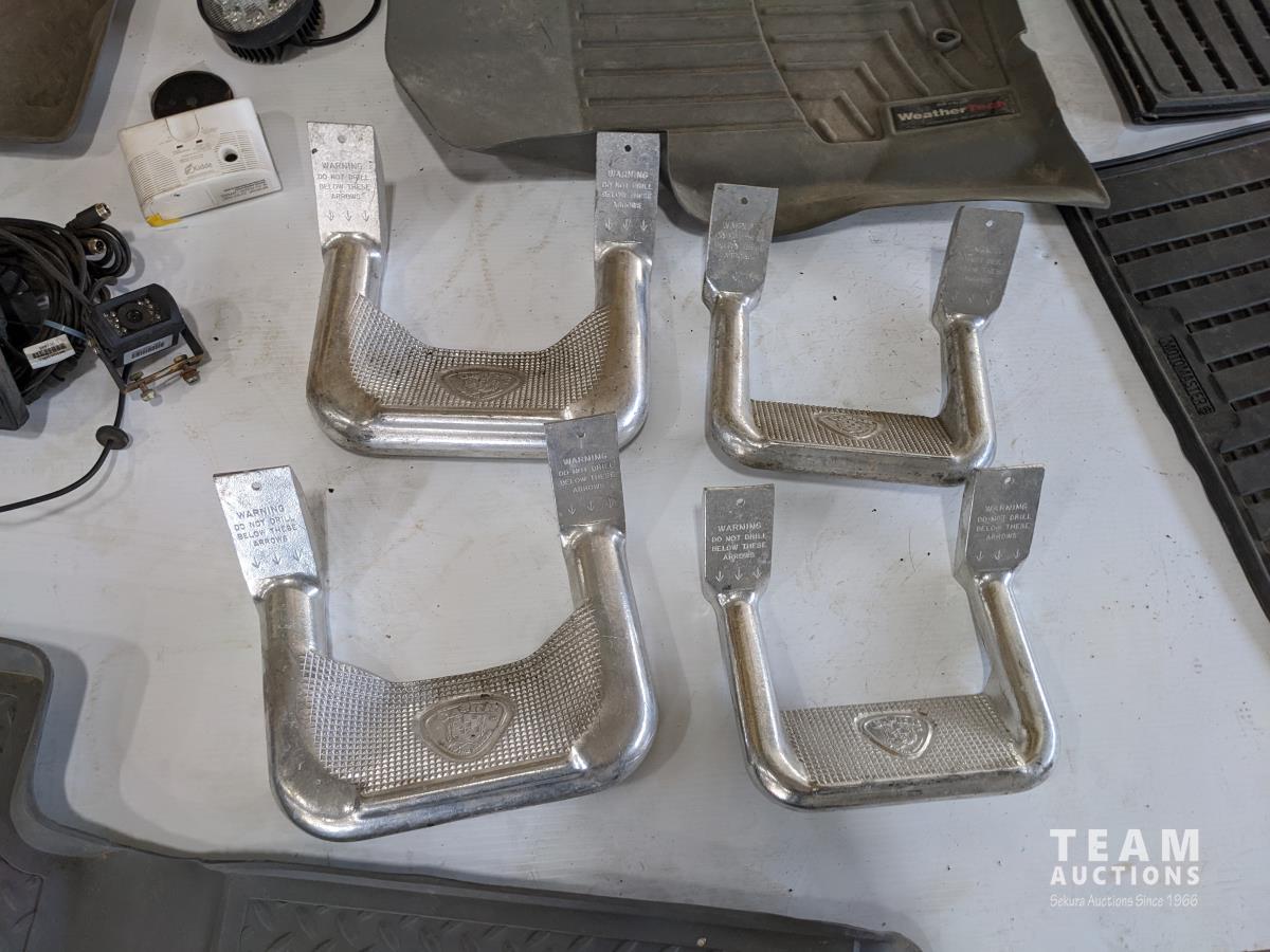 Carbon monoxide alarm, backup camera kit, light, truck steps, assorted mats