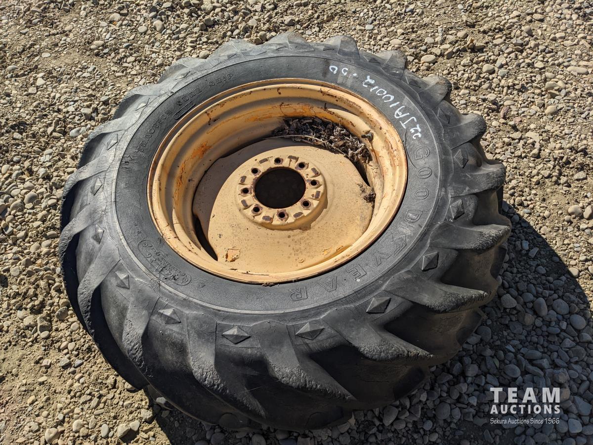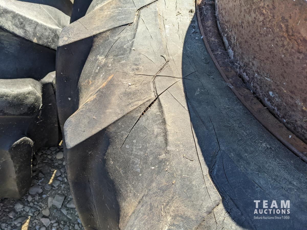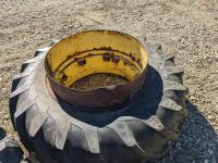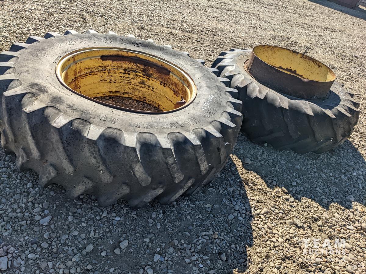 (2) 20.8R38 tires, (2) 13 inch, 17 inch and 28 inch steel rims and (1) 18.4X34 tire with rim