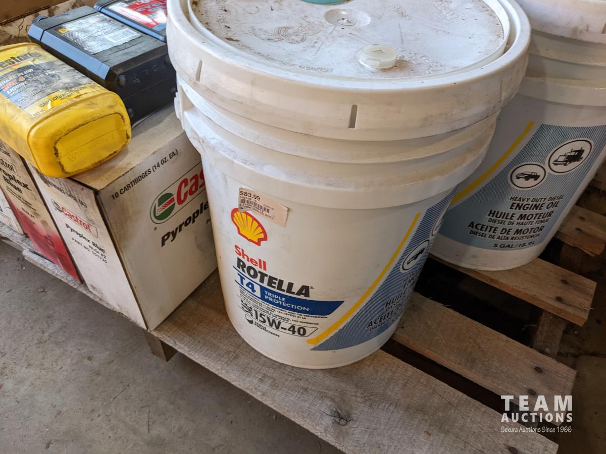 grease tubes, antifreeze, (2) unopened Rotella T415 15-40W engine oil, rubber gloves