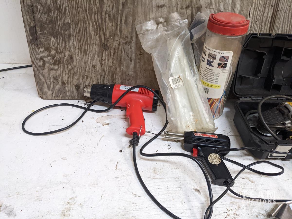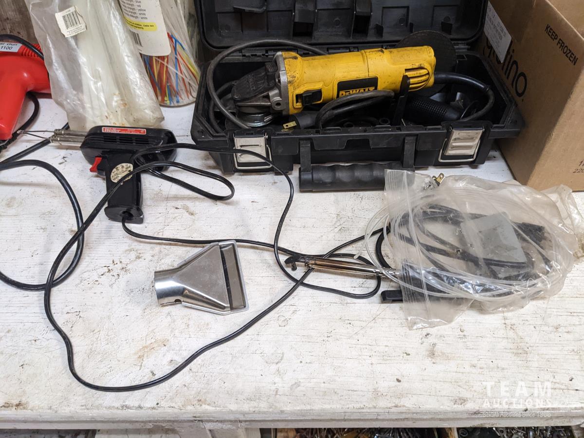 Dewalt Angle grinder, heat gun, soldering gun and solder supplies, shop supplies