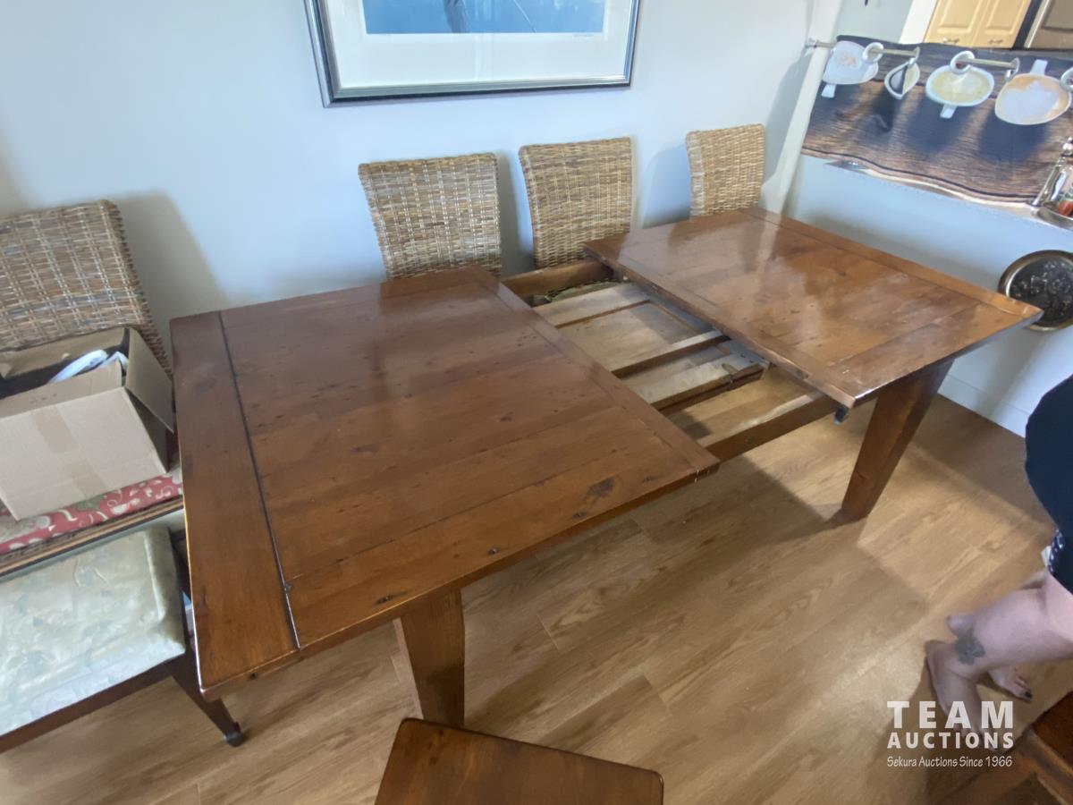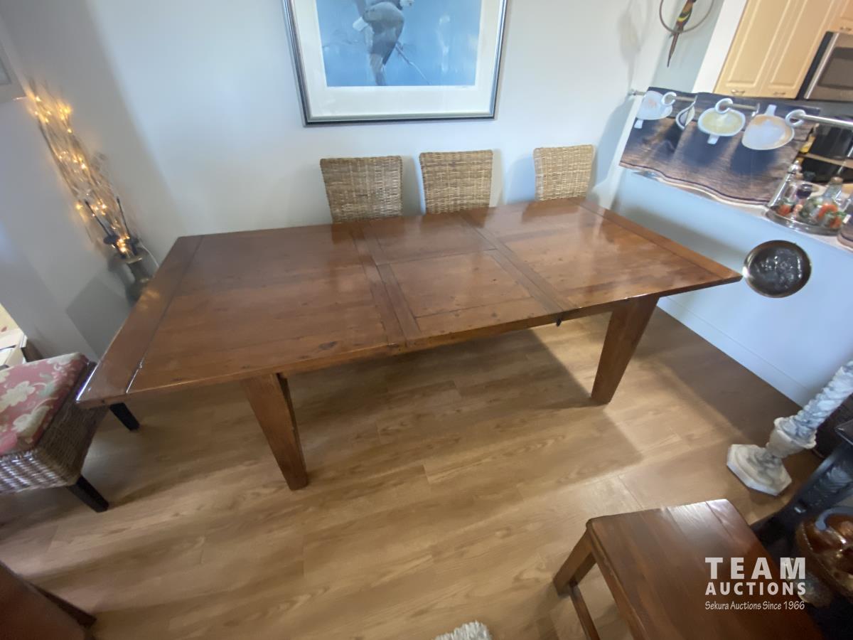 96 Inch X 44 Inch X 30.5 Inch height, with leaf, (2) chairs