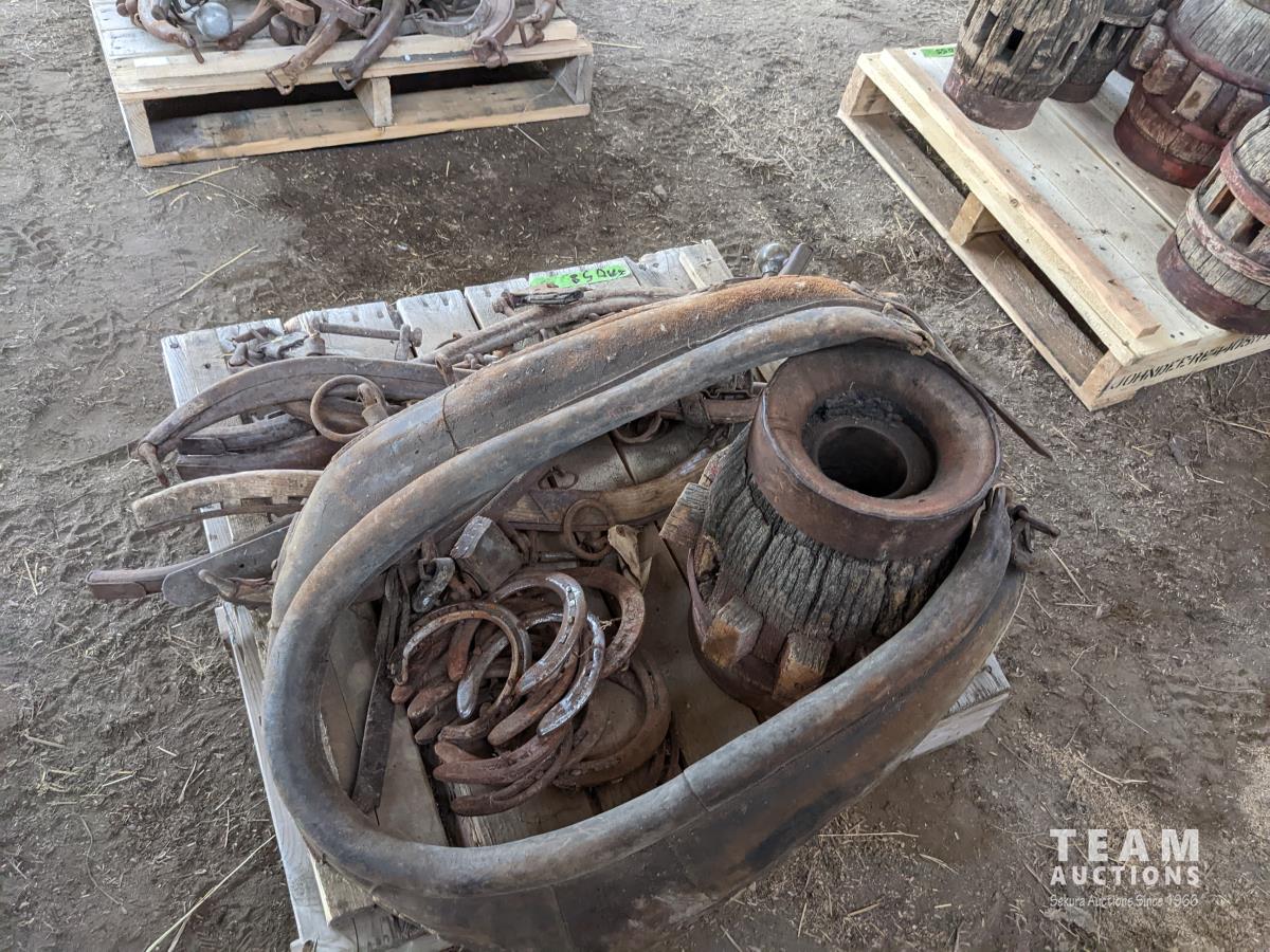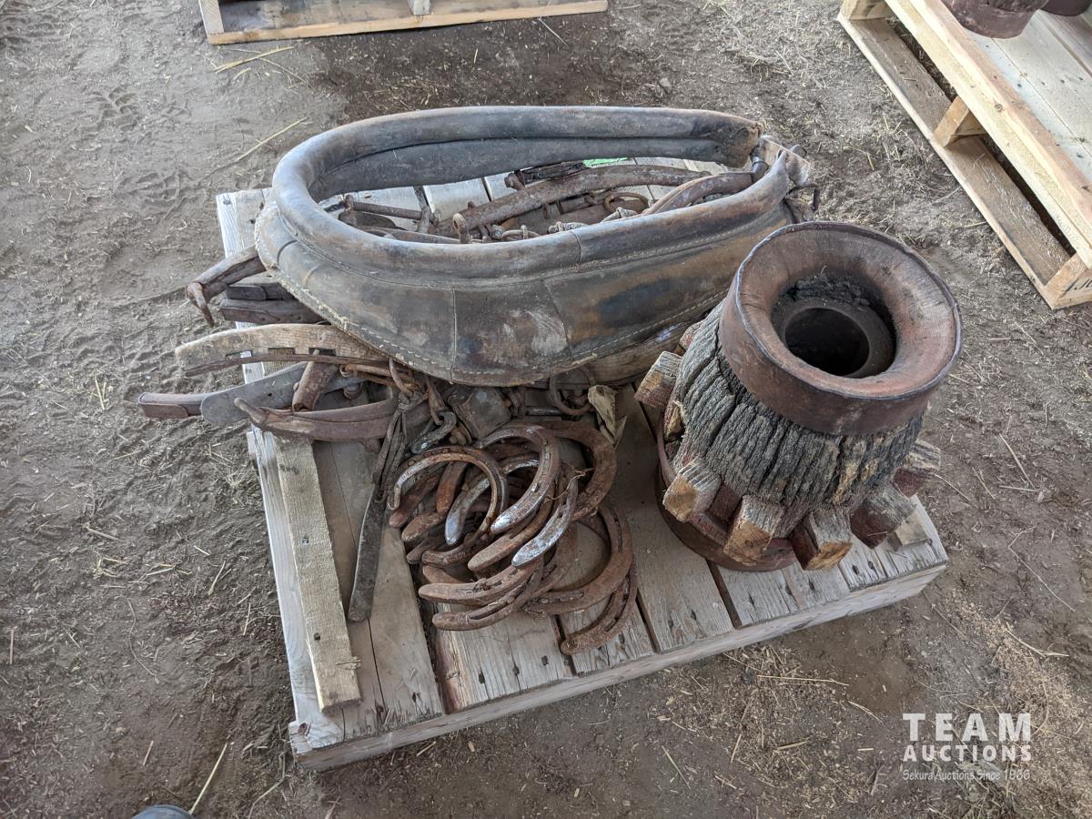 2247 Wagon Hub, Metal & Wood Hames, Horse Collar & Horse Shoes
