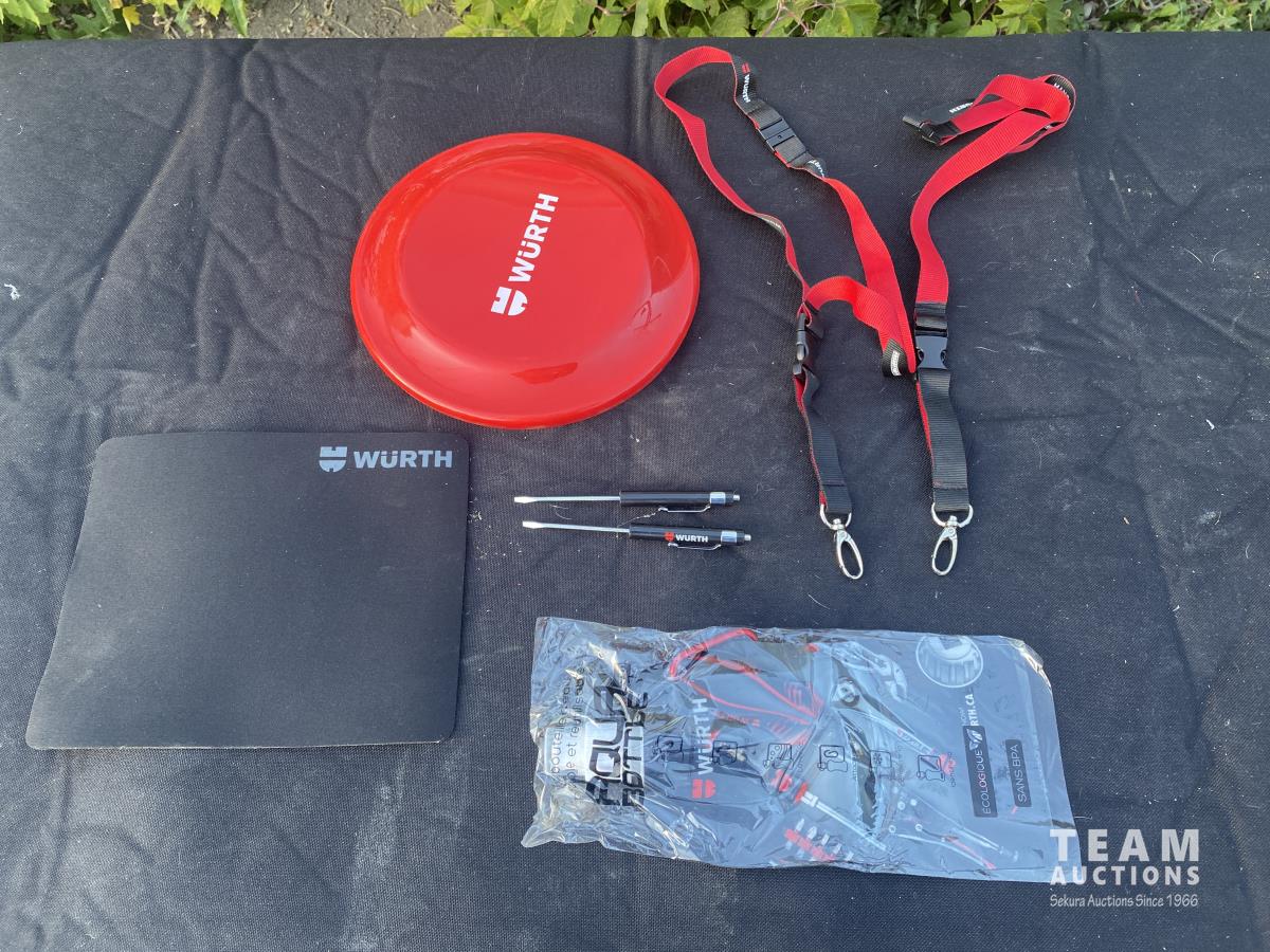 Frisbee, (2) screwdriver, mouse pad, water bottle, (2) lanyard