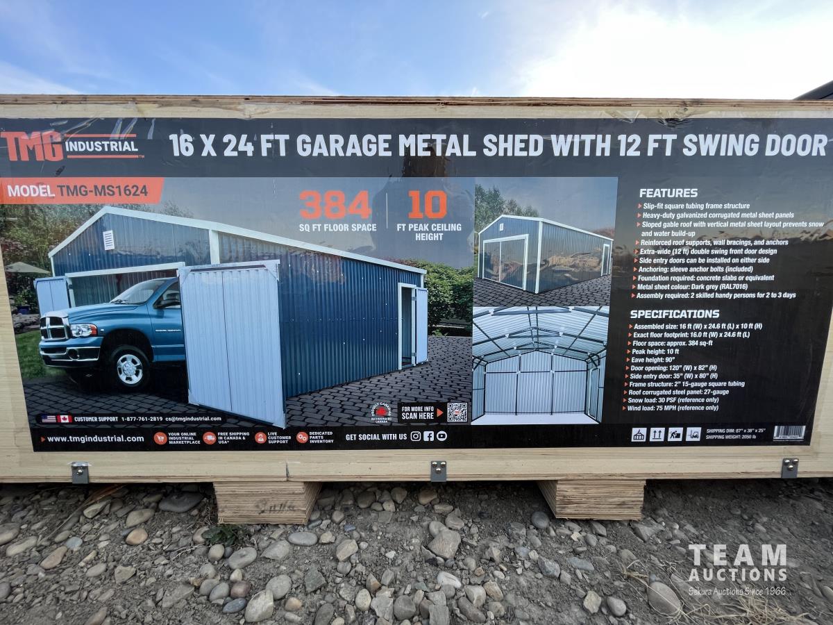 46 TMG Industrial TMG-MS1624 16 Ft X 24 Ft Metal Shed Garage (Unused)