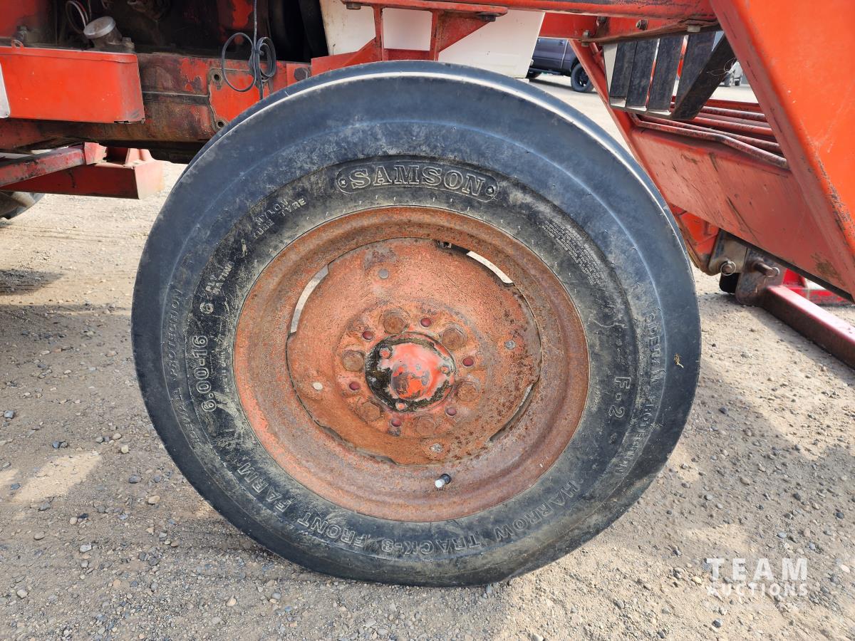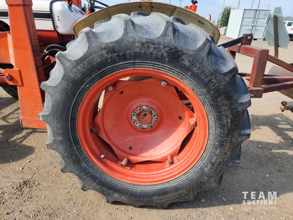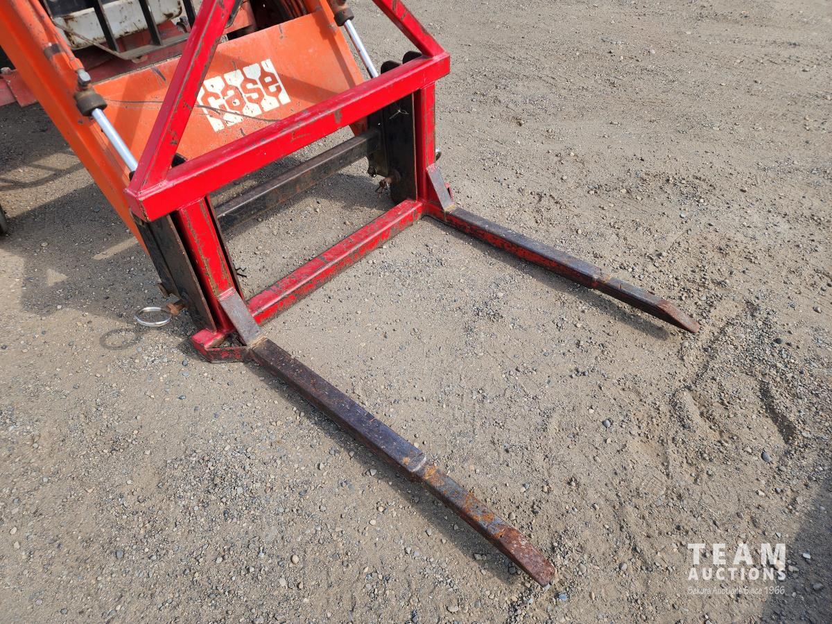 Case 60 FEL, 5 ft bucket, bale forks, 3 cylinder gas engine with circulating block heater, 12 speed transmission, 3 PT hitch, (2) rear hydraulic outlets, 540 PTO, 90 inch rear 3Pt blade, 6.00-16 front & 13.6-28 rear tires
