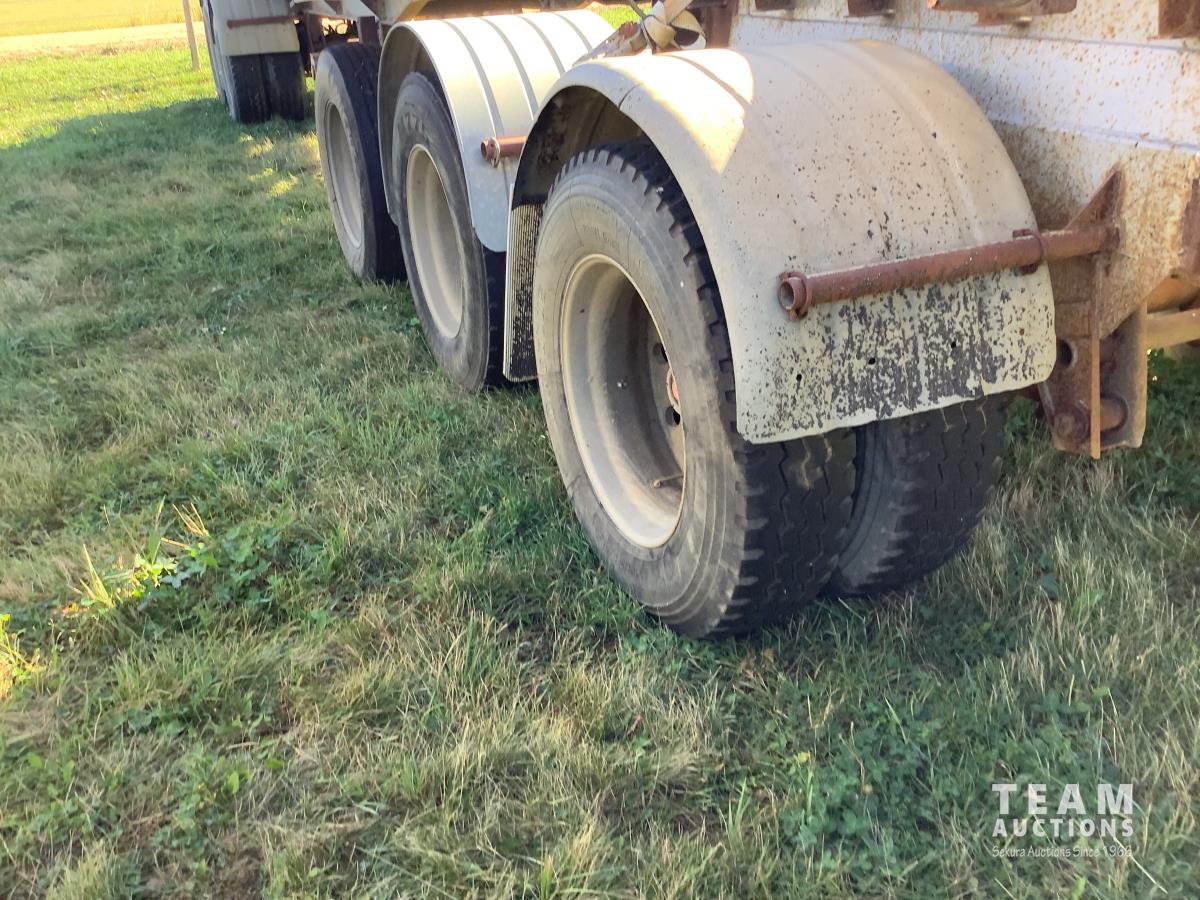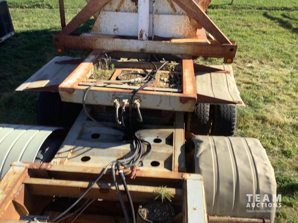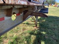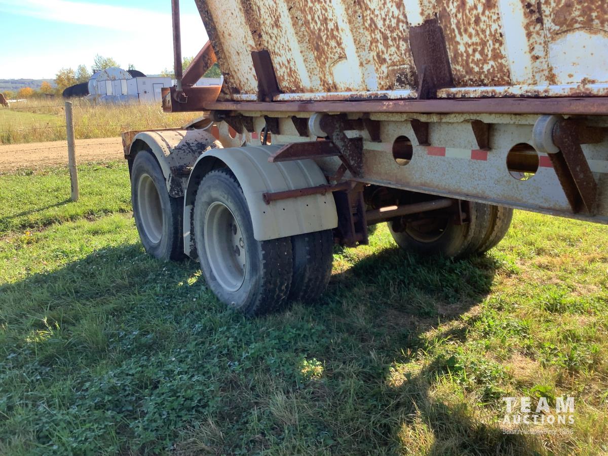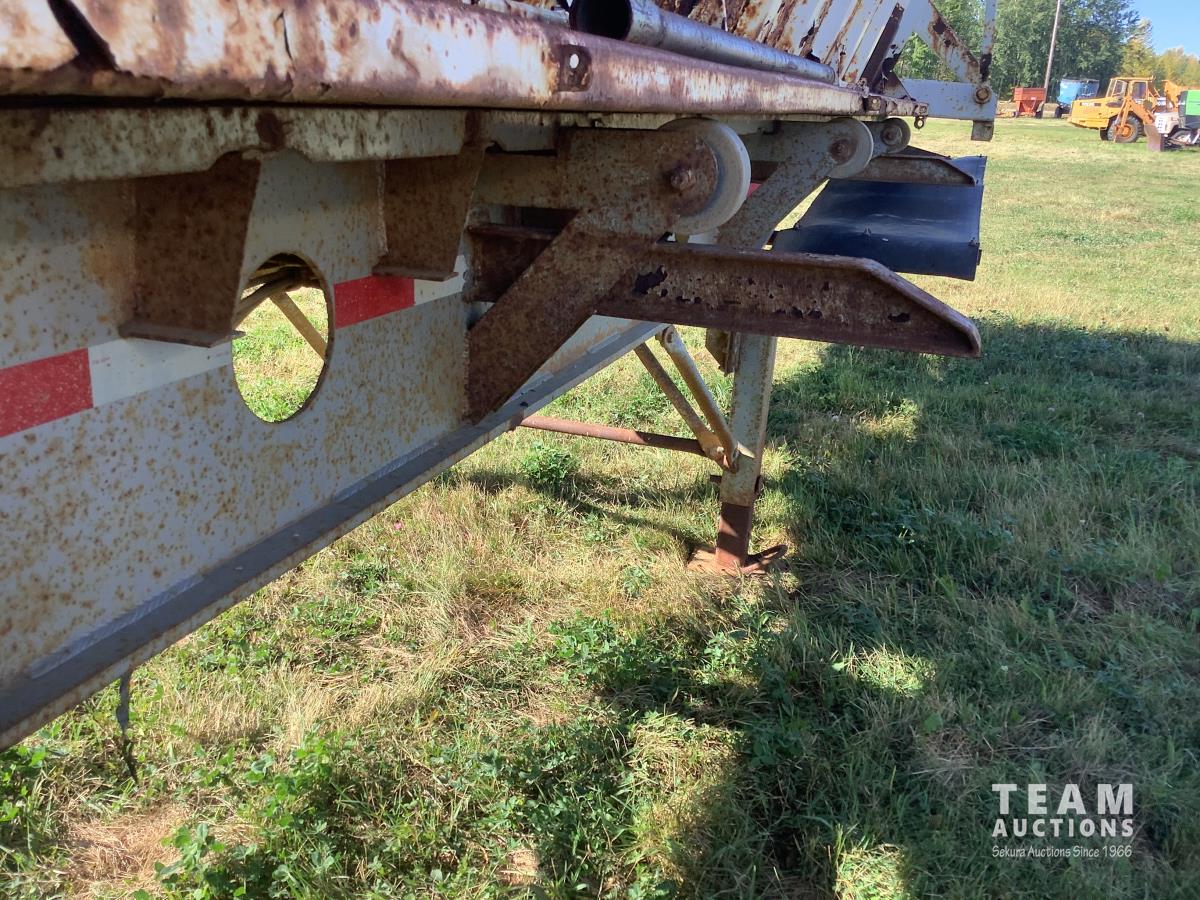 No tarps and no current CVIP. This trailer is a side dump roll out system that was a early model that will spread a windrow and they worked very well. Trailer is in overall decent shape has been parked for several years.