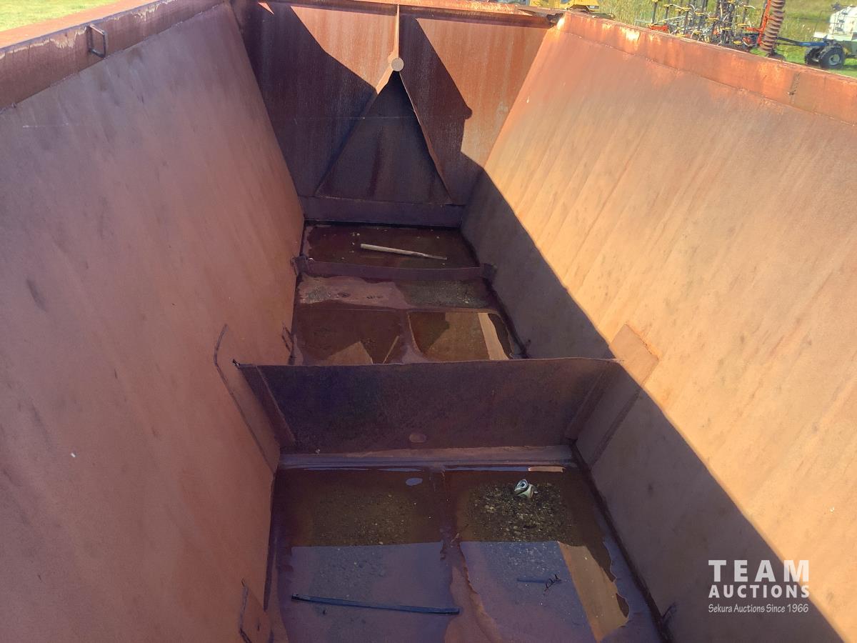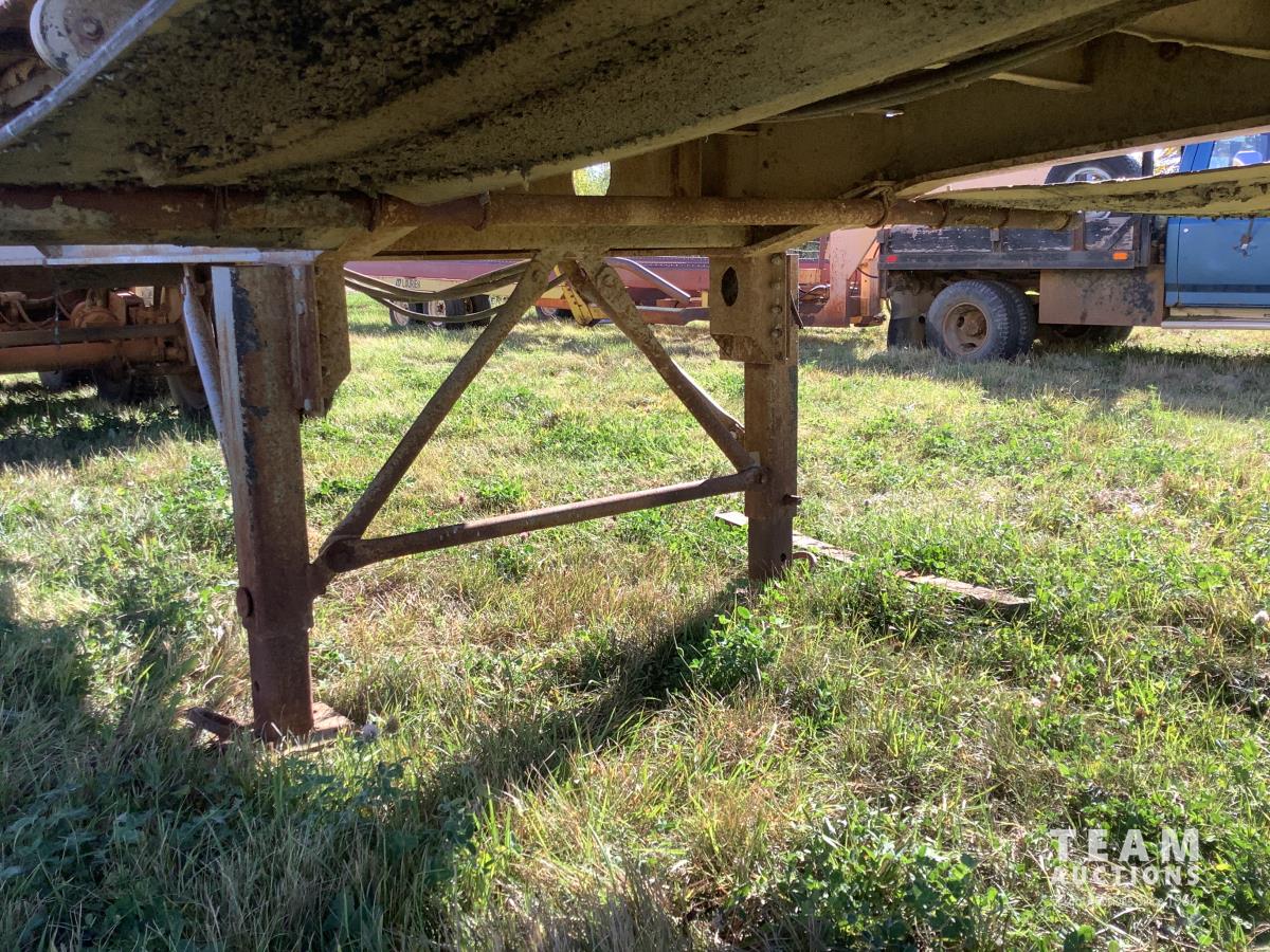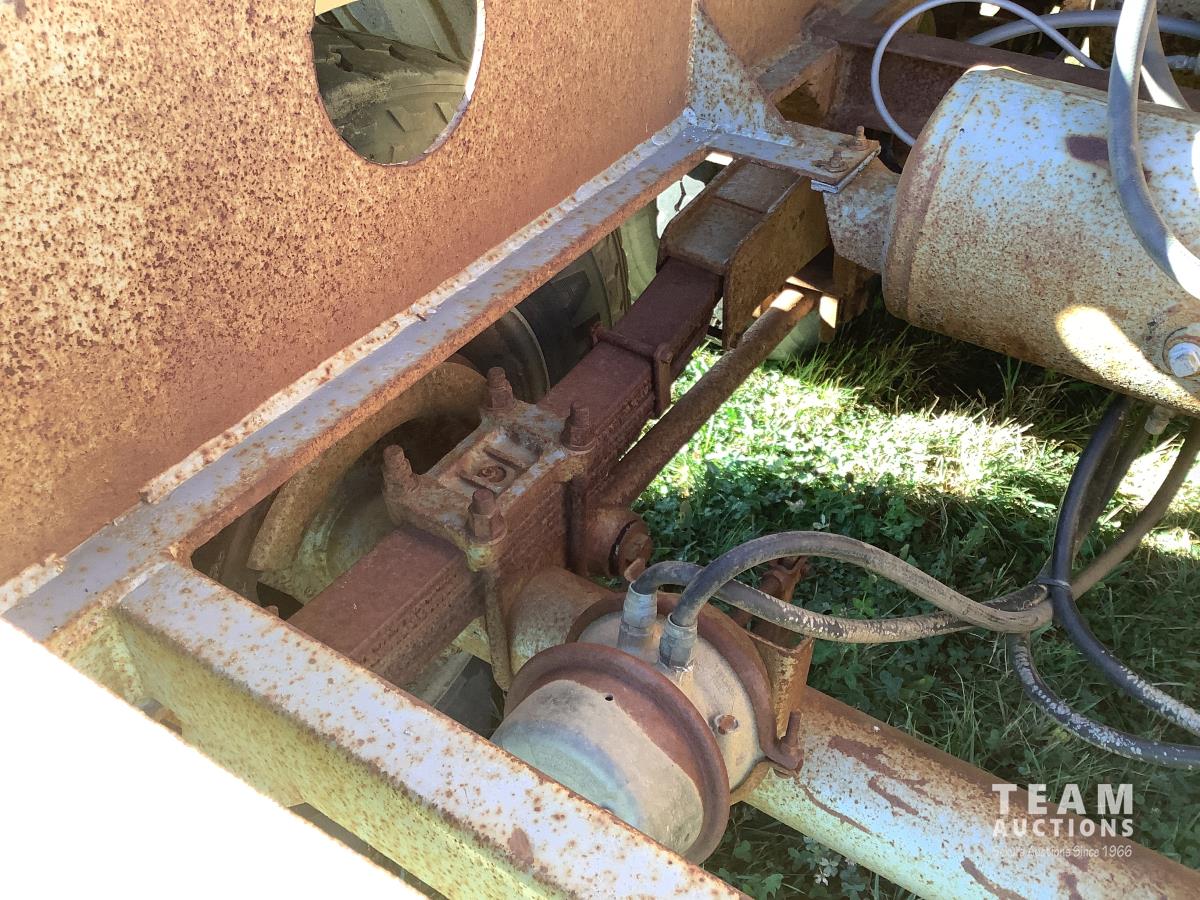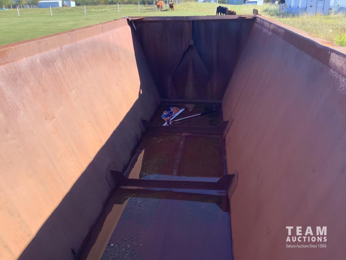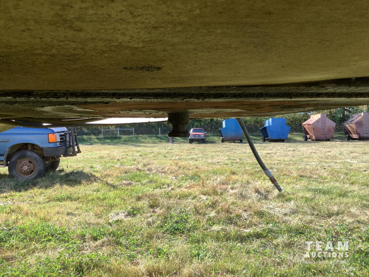 No tarps and no current CVIP. This trailer is a side dump roll out system that was a early model that will spread a windrow and they worked very well. Trailer is in overall decent shape has been parked for several years.