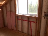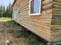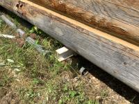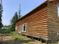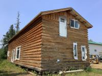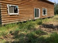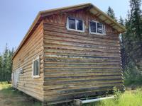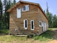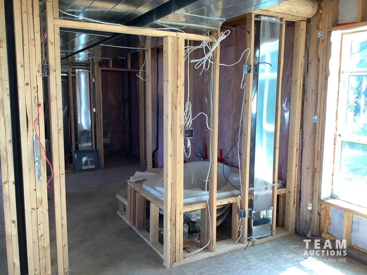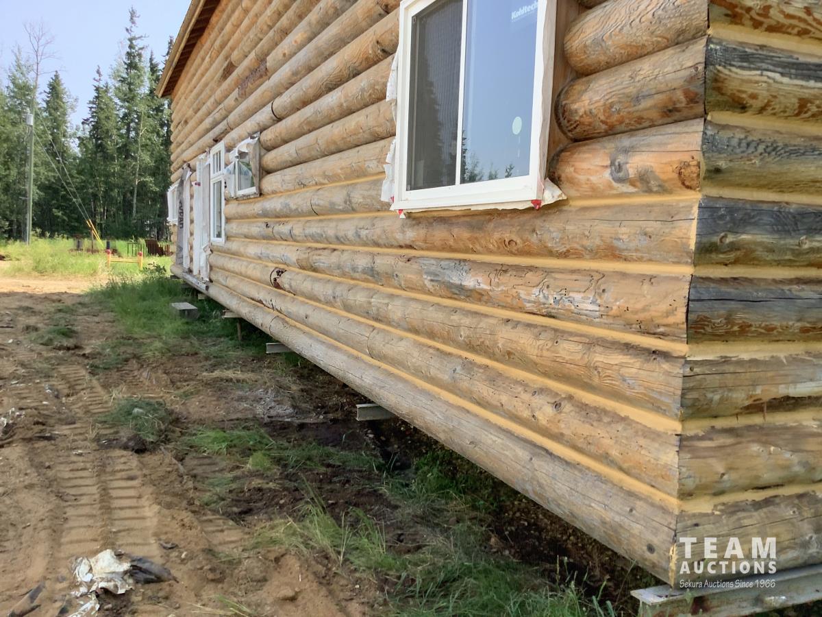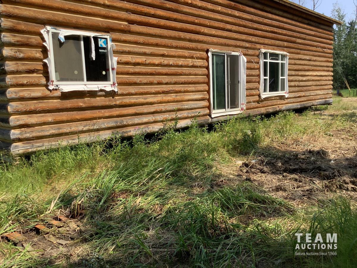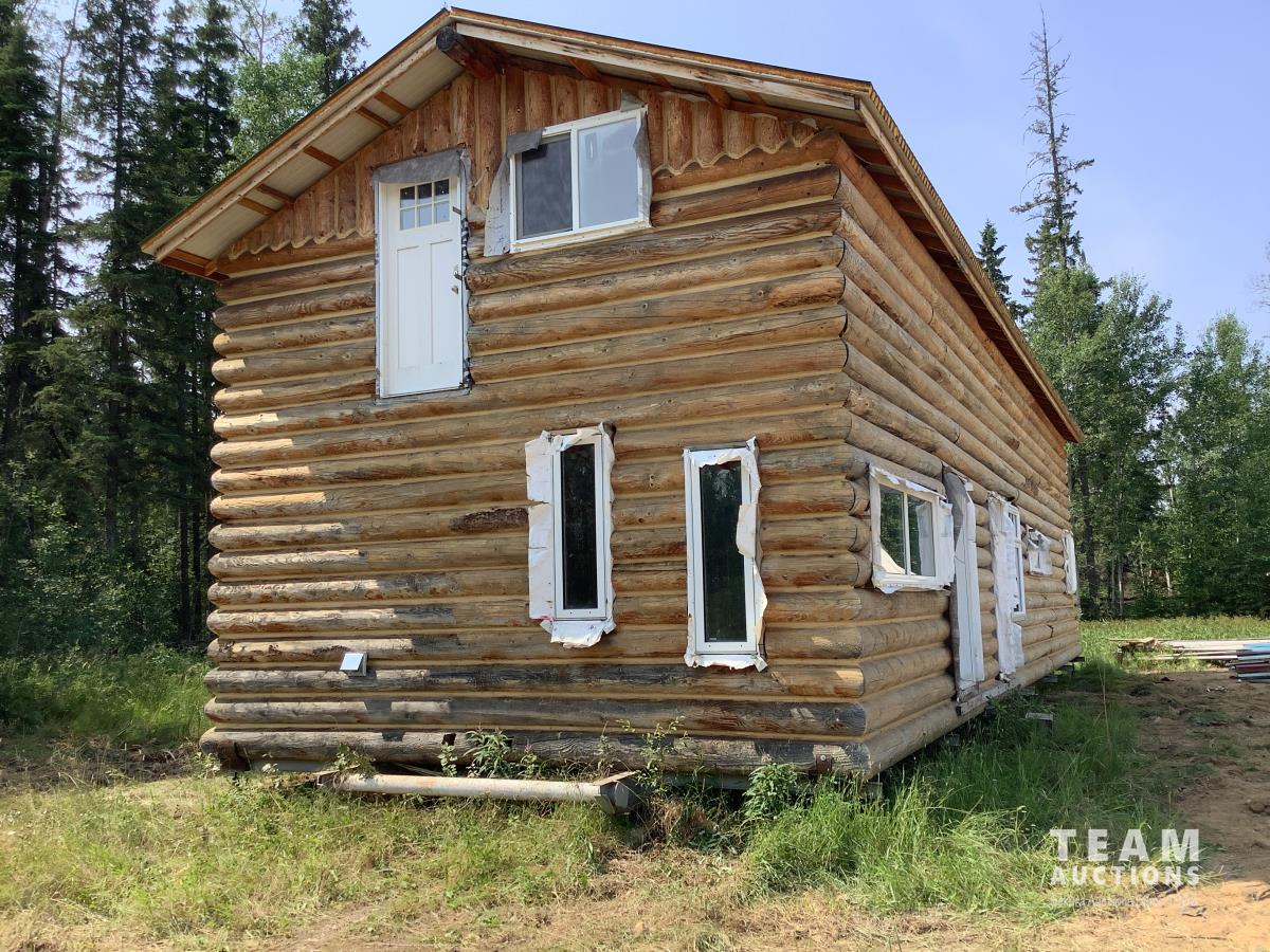 Built 7 years ago with spruce logs, all wiring installed up to breaker box, new Armstrong furnace & ducts installed, plumbing roughed in with shower base & Jacuzzi tub, Kuhltech windows and 2 inch foam insulated roof panels and floor with same 2 inch insulation, all doors are installed and chinking in logs. Main floor plan - (2) side entry doors, furnace room, (2) bedrooms with shower base and Jacuzzi tub, office area, open kitchen and living room area, pantry, sliding door deck access. Upper floor plan - (2) bedrooms with one at each end with bathrooms and upper deck access from one. There is (4) Bedrooms and (3) bathrooms in this plan.