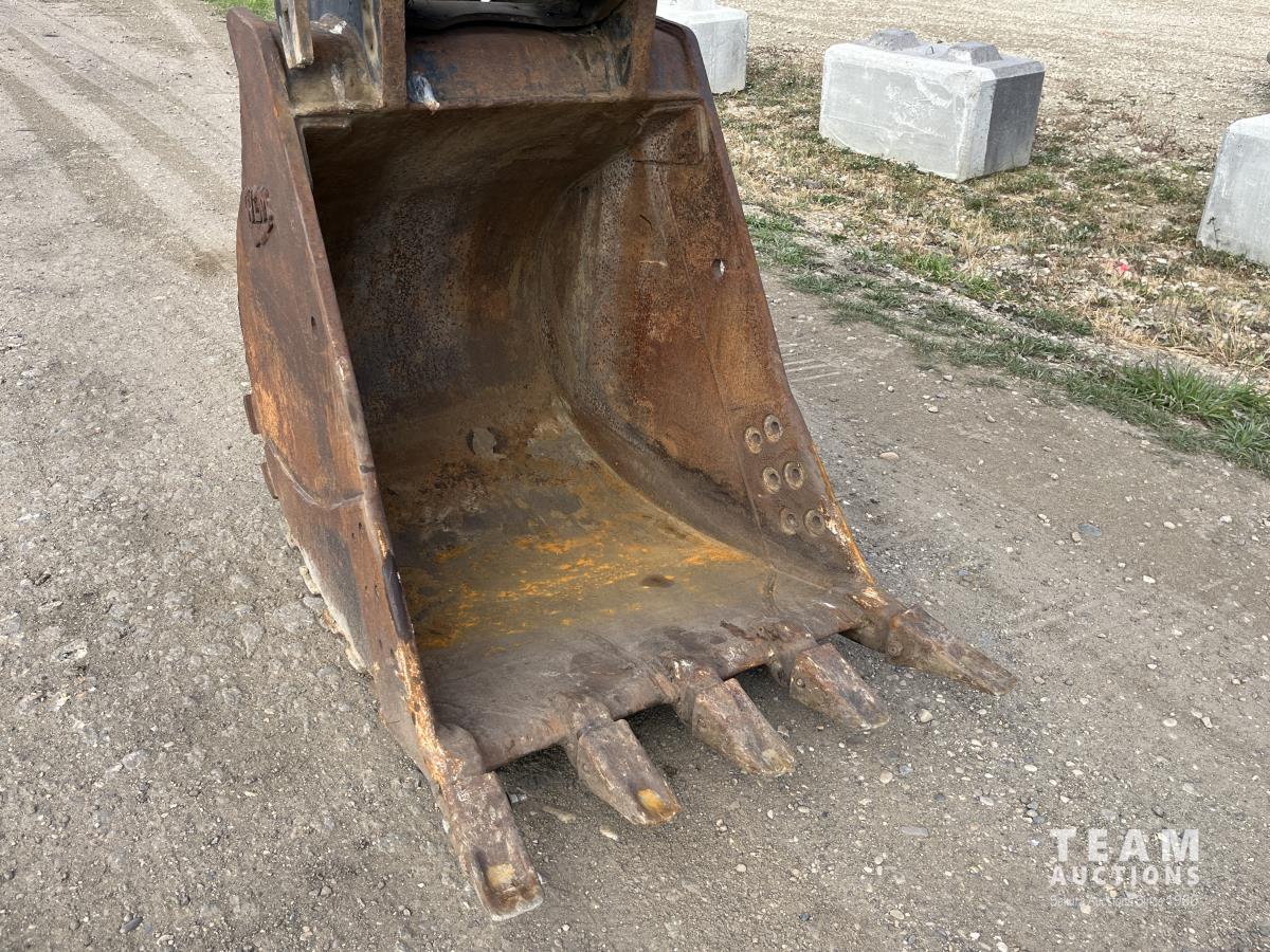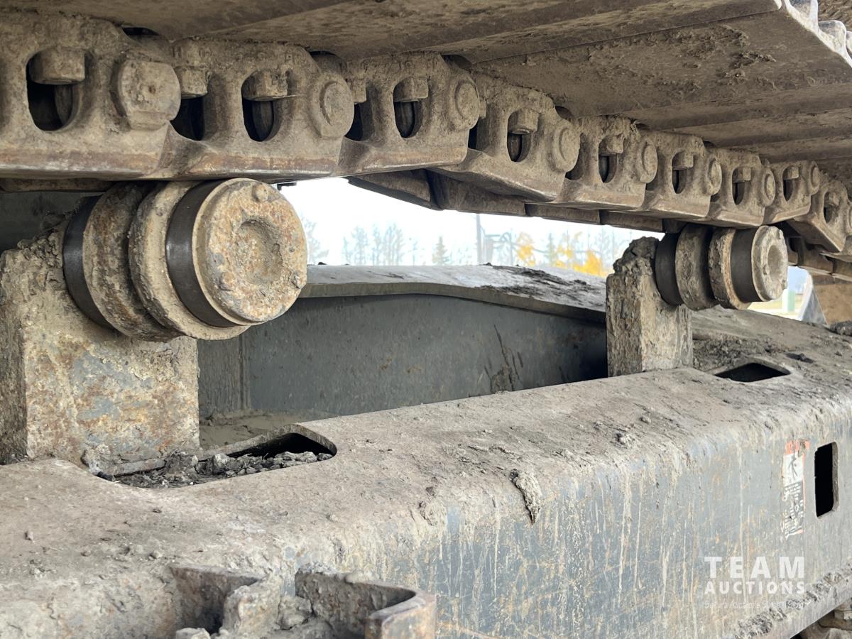 32 inch dig bucket, hydraulic thumb, aux hydraulics, 9 ft 6 inch stick, AC cab, 32 inch pads, positive air shutoff, coupler, catwalks, circulating block heater