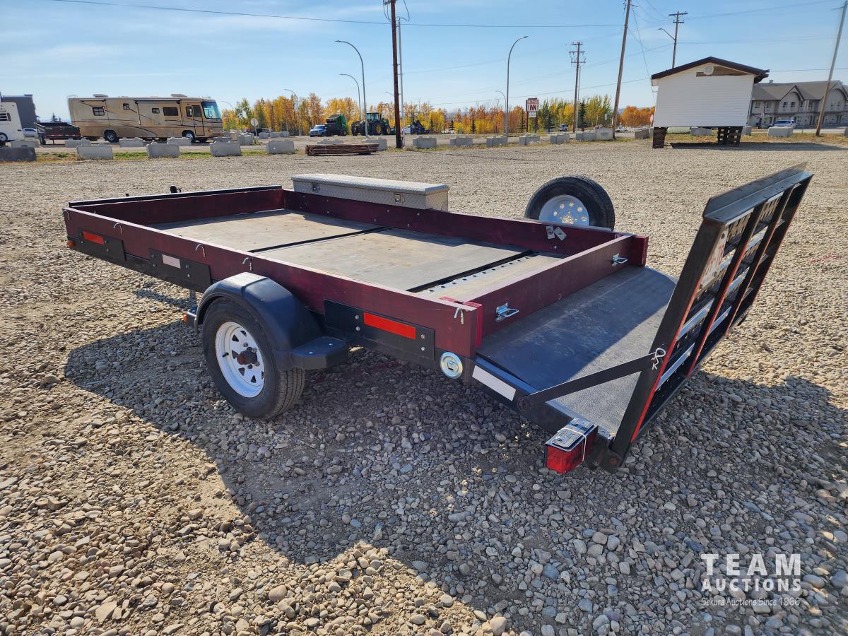 6 ft wide, aluminum tool box, rubber flooring over steel deck, 2 ft folding ramps, spring suspension, new spare tire with rim, 175/80R13 tires