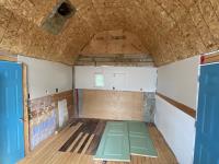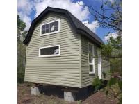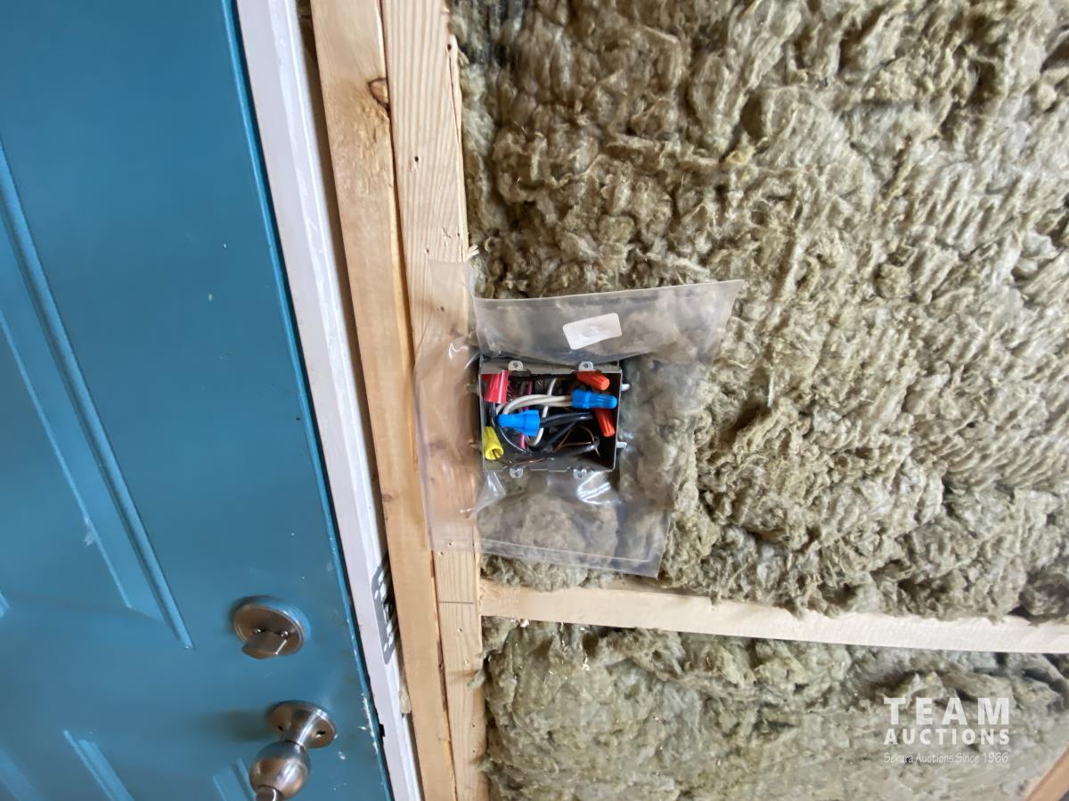 7 ft walls, 2X6 floor on 16 inch centers, insulated floor, plywood on the bottom, vinyl siding, 2X4 walls, fully wired, 36 inch insulated white Jeld-Win man door