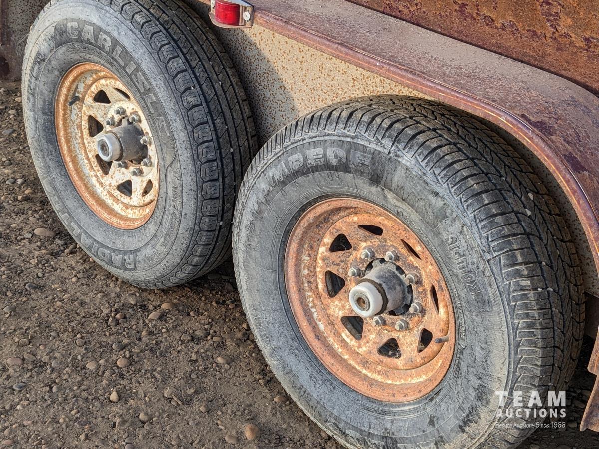 78 inch wide, 7000 axles, torsion bar suspension, full swing rear gate with slider, (1) divider gate, removable stock box, rubber mats, 235/85R16 tires