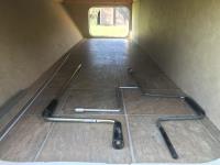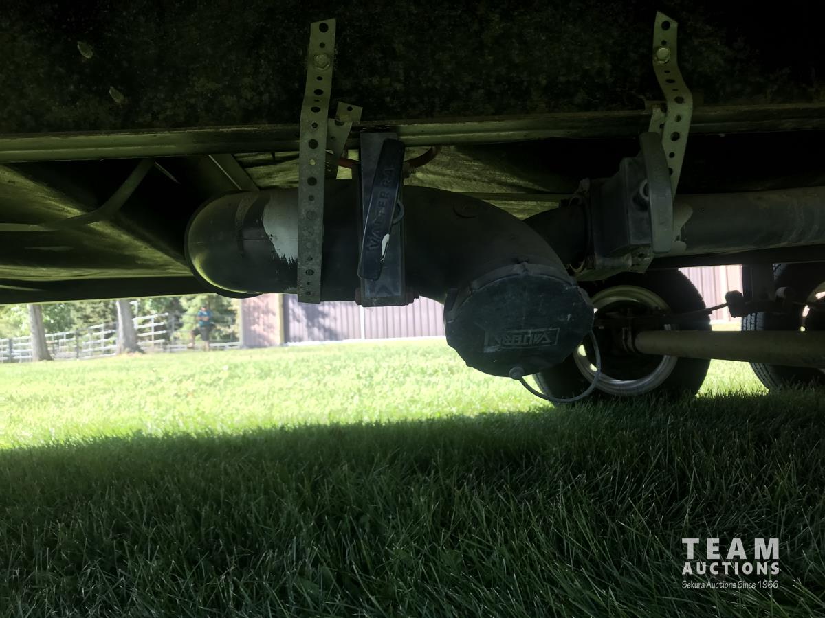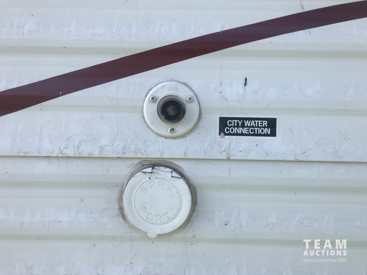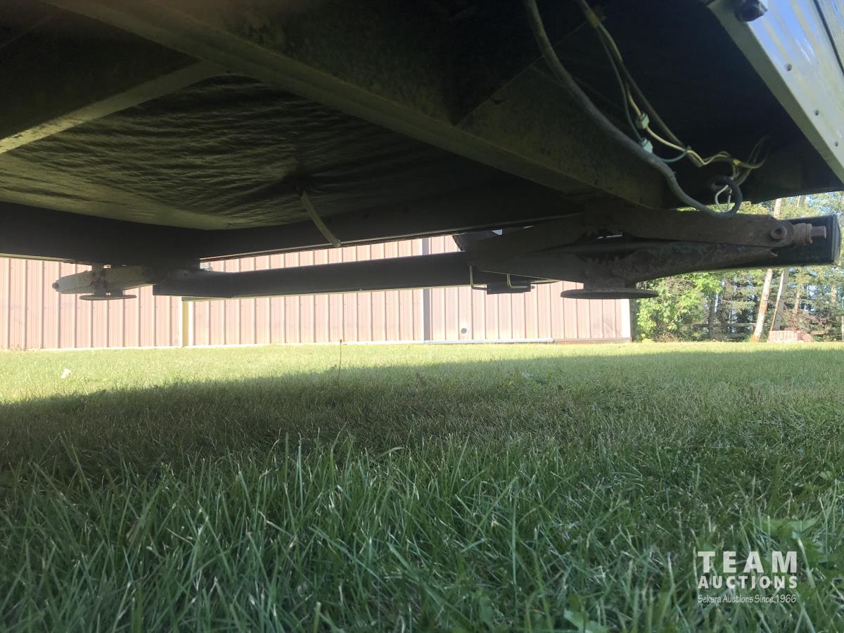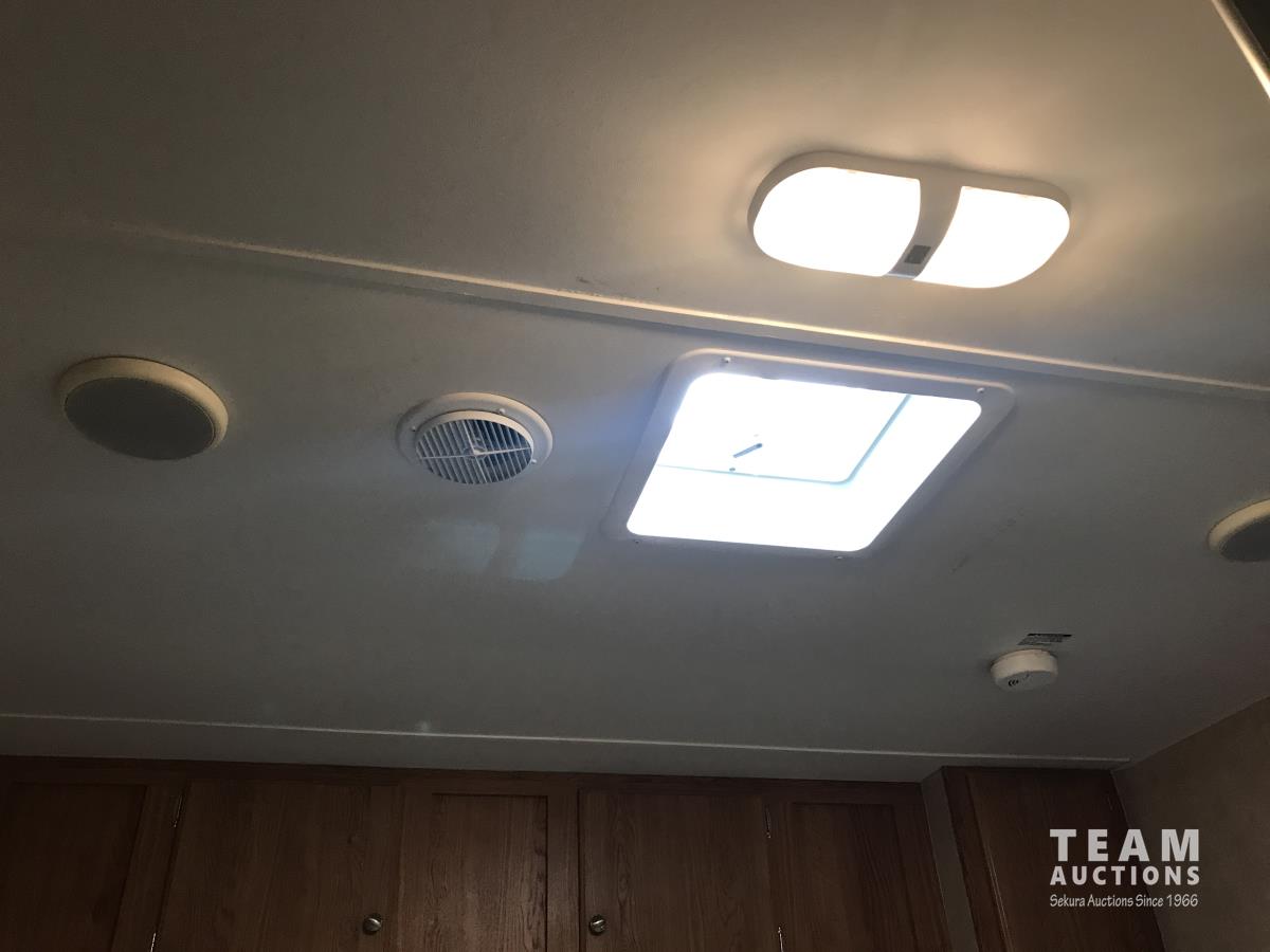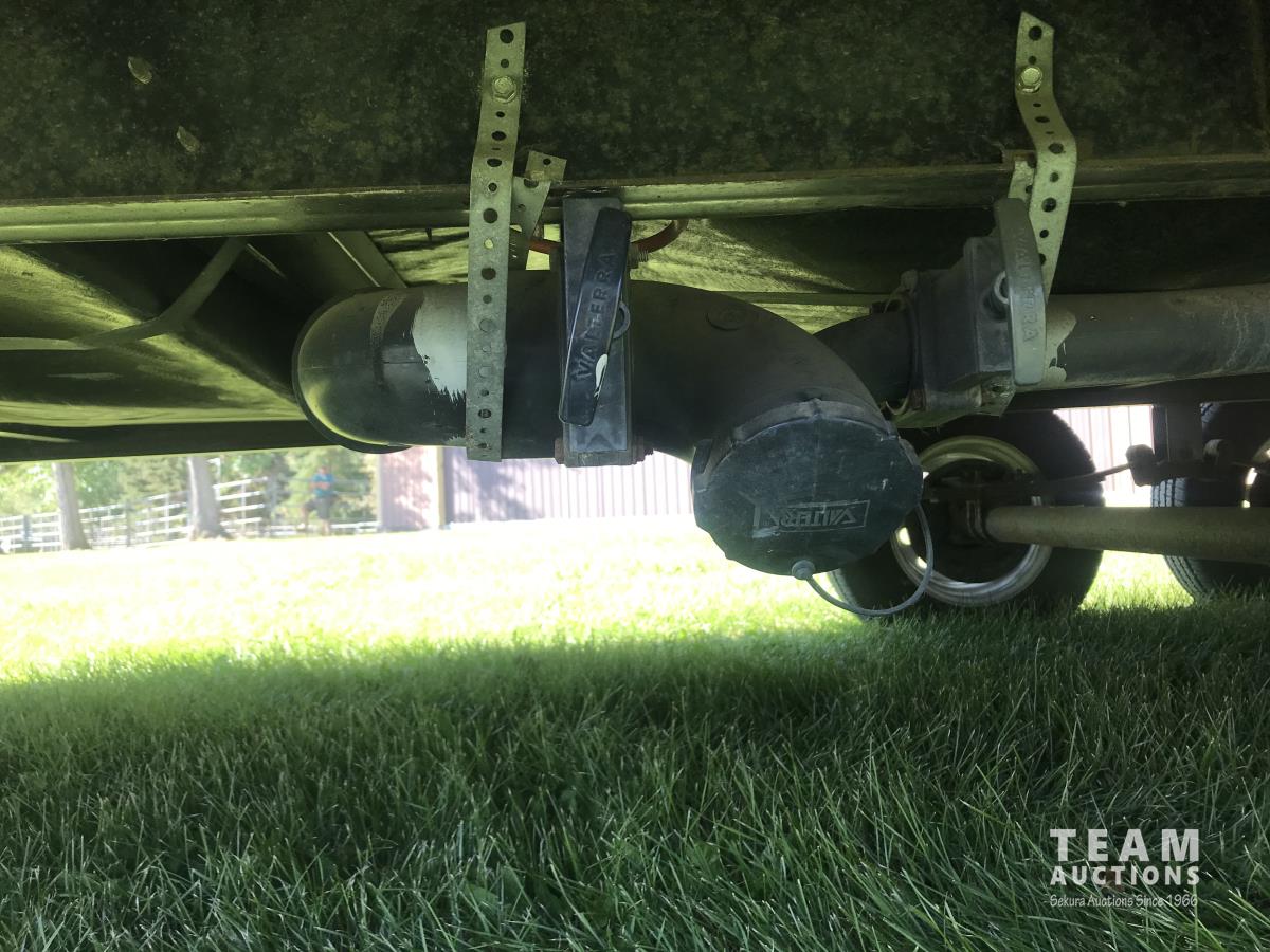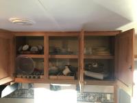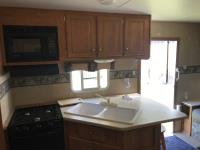 Kitchen with stove, microwave, fridge, dinette, fold out couch, bathroom with tub and shower, bedroom, A/C, slide out, awning, 2-5/16 inch ball hitch, load leveler hitch, 30 lb propane tanks with cover, batteries, 205/75R14 tires