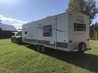 This super clean trailer has new electric jack, new awning and everything works. This unit was fully recondtioned at Vellner dealership in Red Deer, AB. Tom bought it in 2021 and never used it due to his wife's illness. Trailer was parked in a shed since he bought it. Call Tom for more information.
