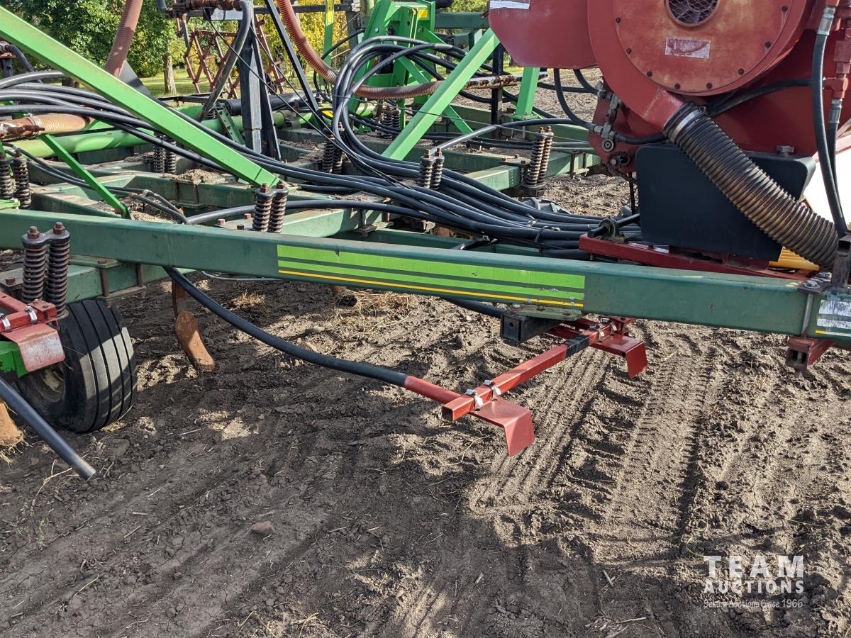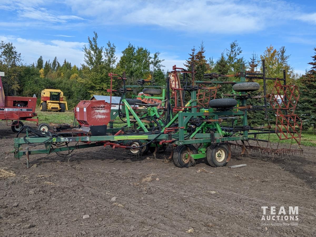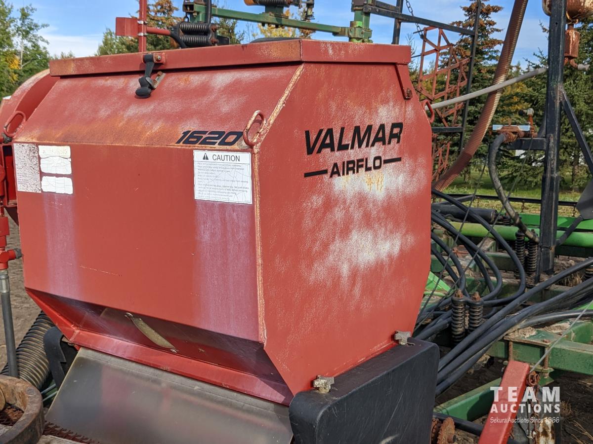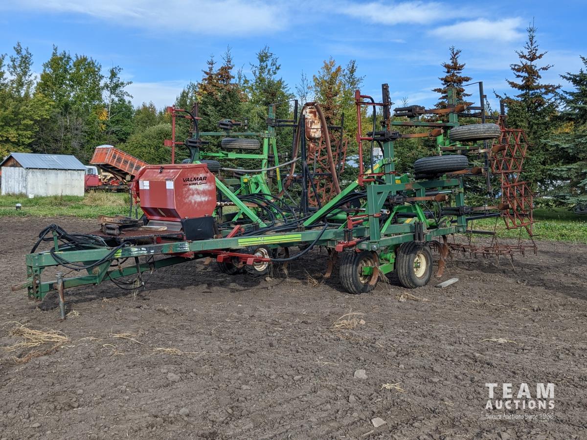 12 inch spacing, beaver tail shovels, diamond harrows, 1620 Valmar applicator, walking axles on main frame and wings