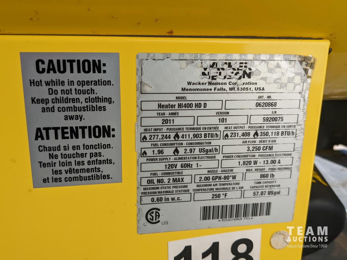 136 2011 Wacker Neuson HI400 HD Diesel Fired 4000,000 BTU Construction Heater