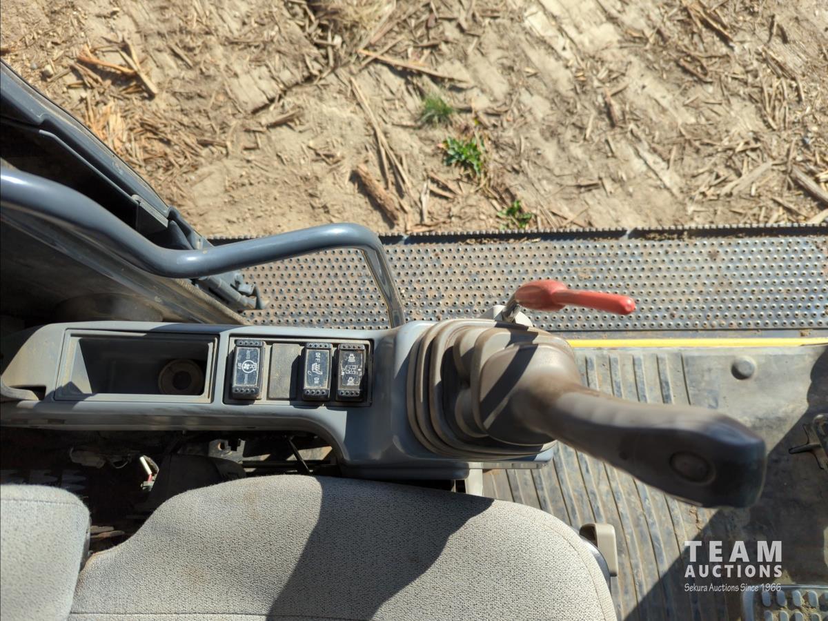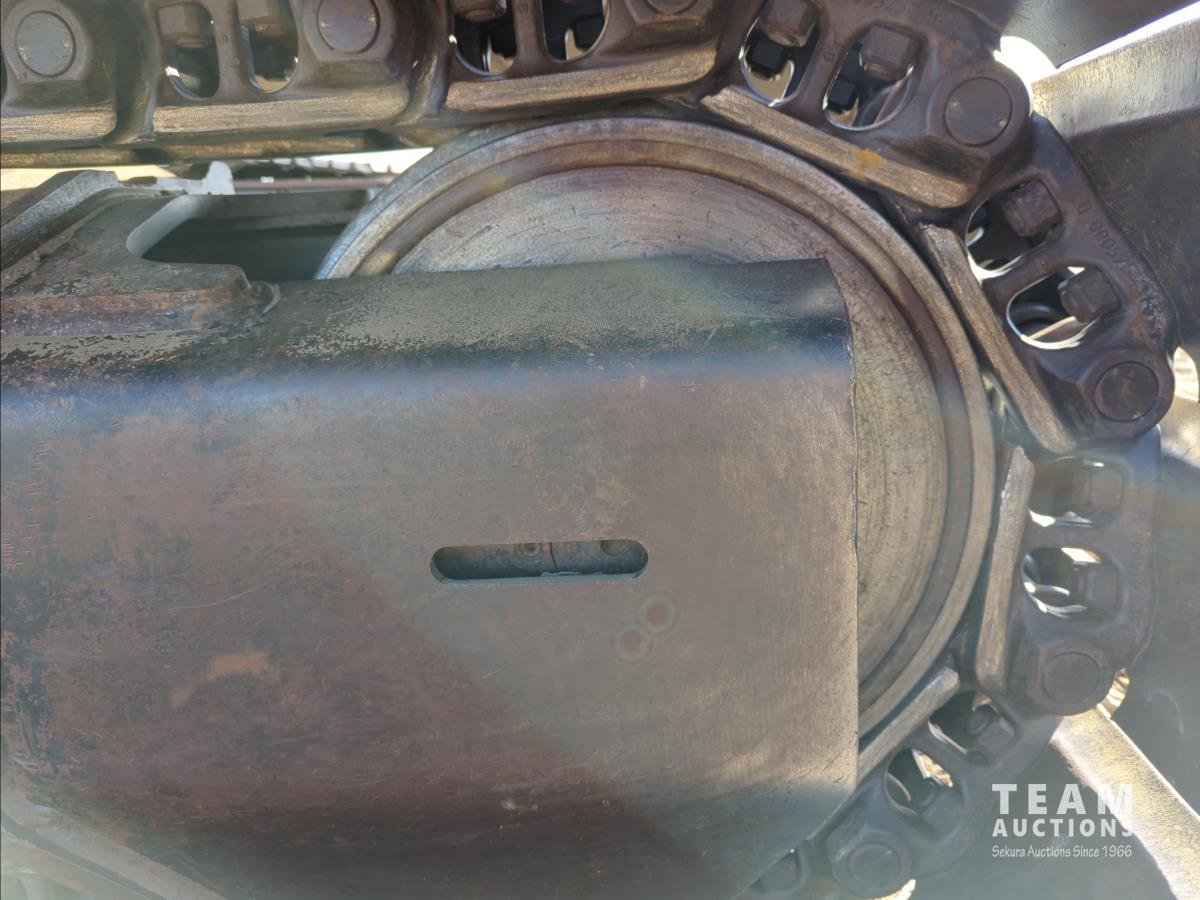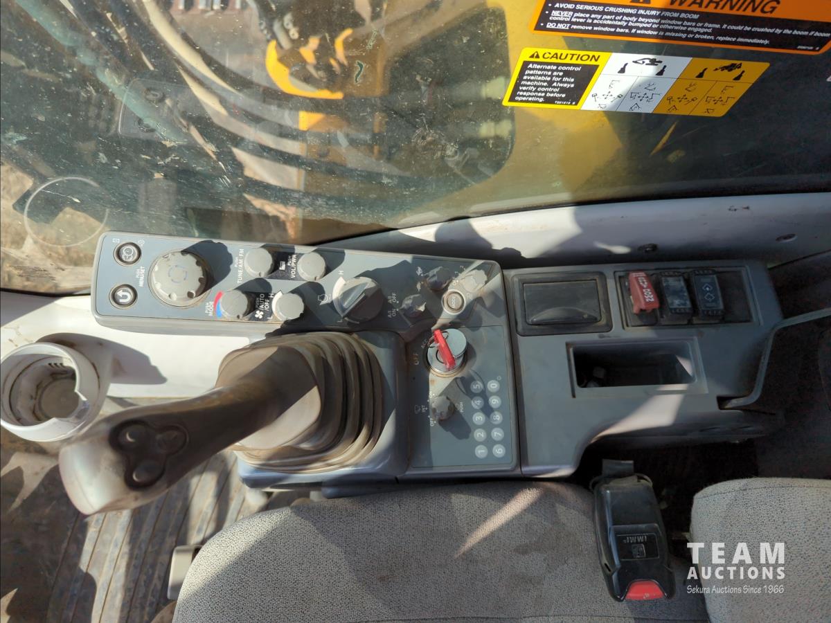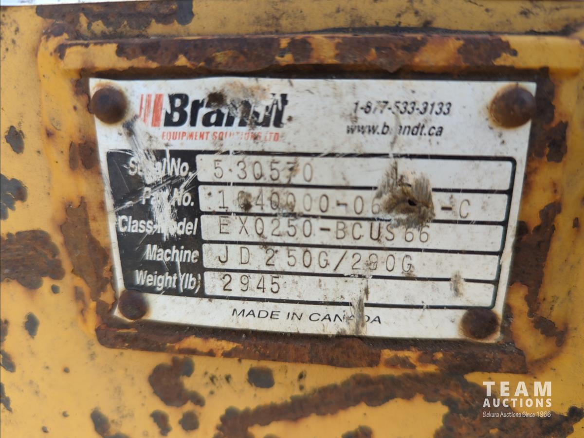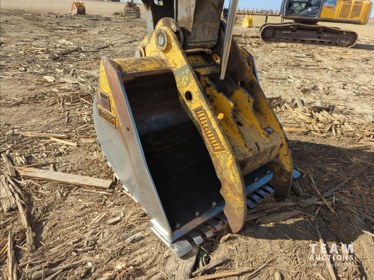 11 ft 11 inch stick, auxiliary hydraulic, Brandt 66 inch Q/C cleanup bucket, hydraulic thumb, A/C cab, cab screens, air ride seat, 31.5 inch triple grouser track pads, catwalks, positive air shutoff, Webasto heater