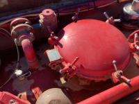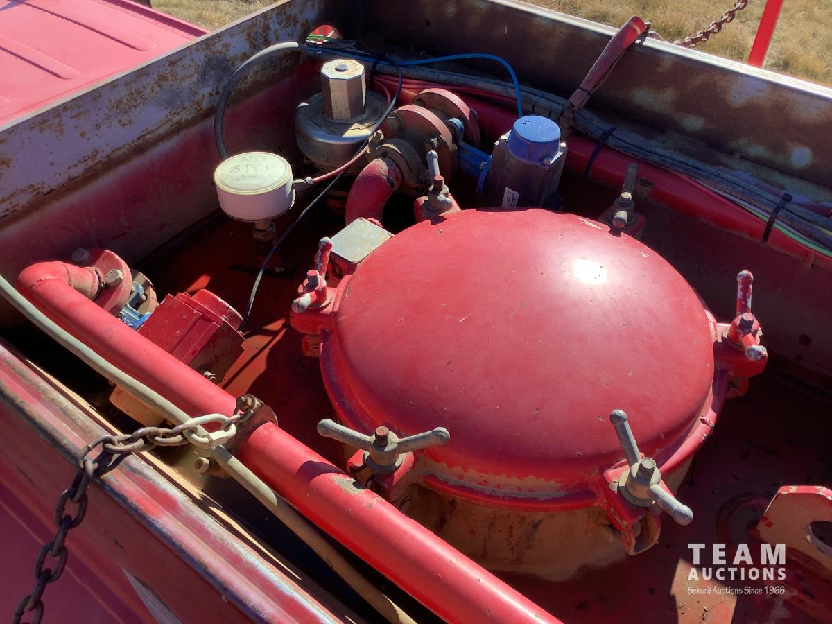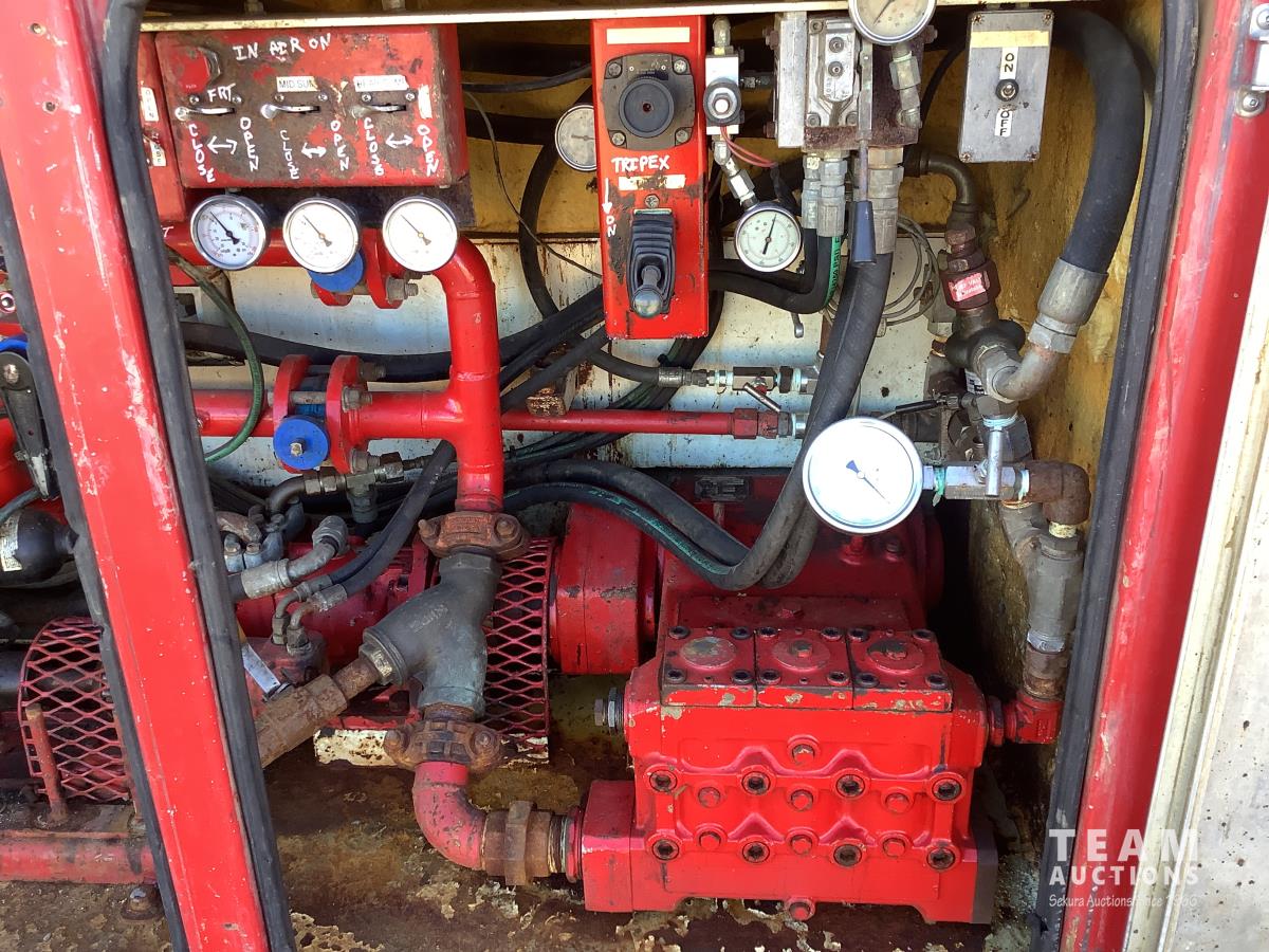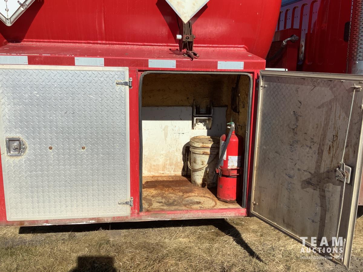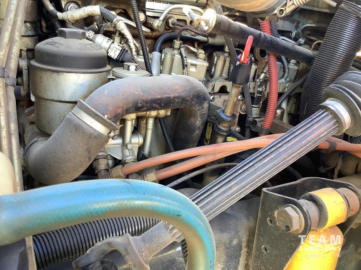 Mercedes 6 cylinder, engine brake, Allison automatic transmission, air ride suspension, 12,000 lb front, 21,000 lb rears, full lockers, 2007 Custom Vac Manufactured 10,287 litre TC407 3 compartment Steel tank, See Level gauges, General Industrial MSS40 triplex pump, 44 GPM, heated compartment, side storage compartment, aluminum rims, 11R22.5 tires