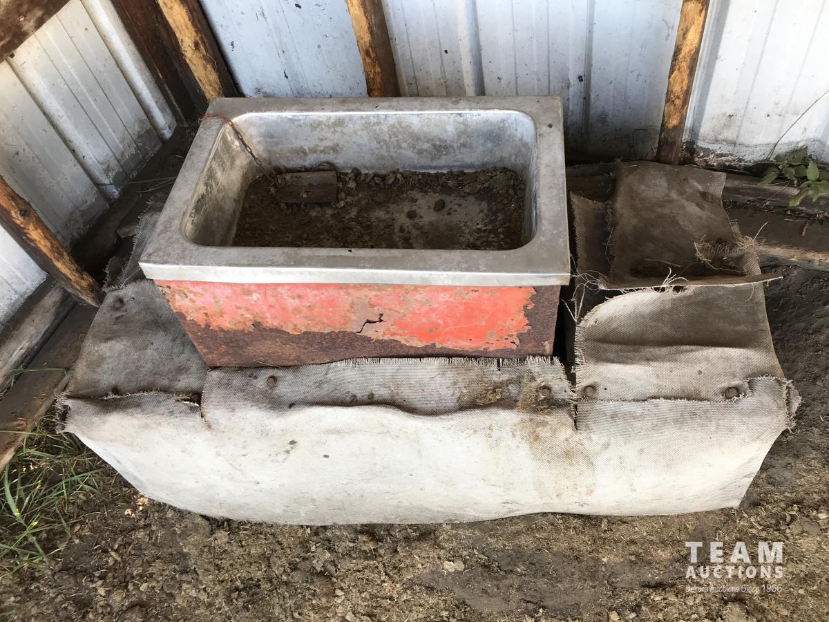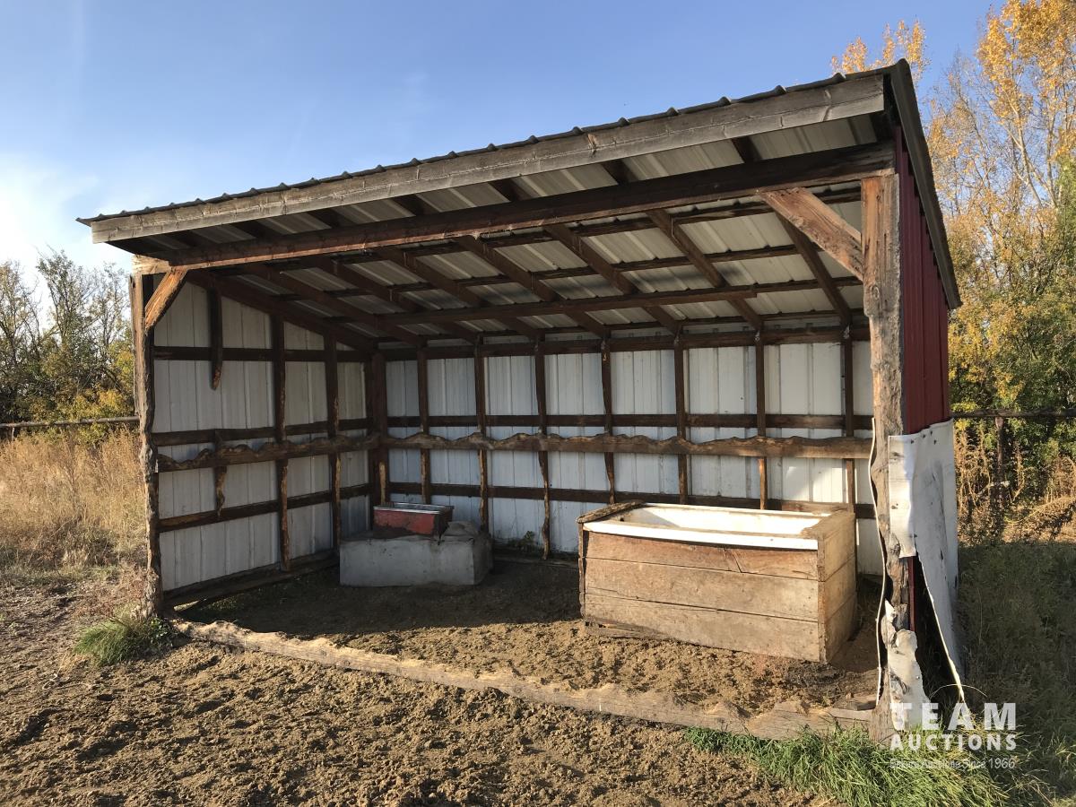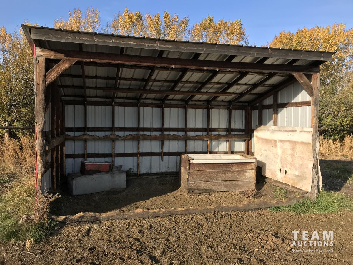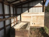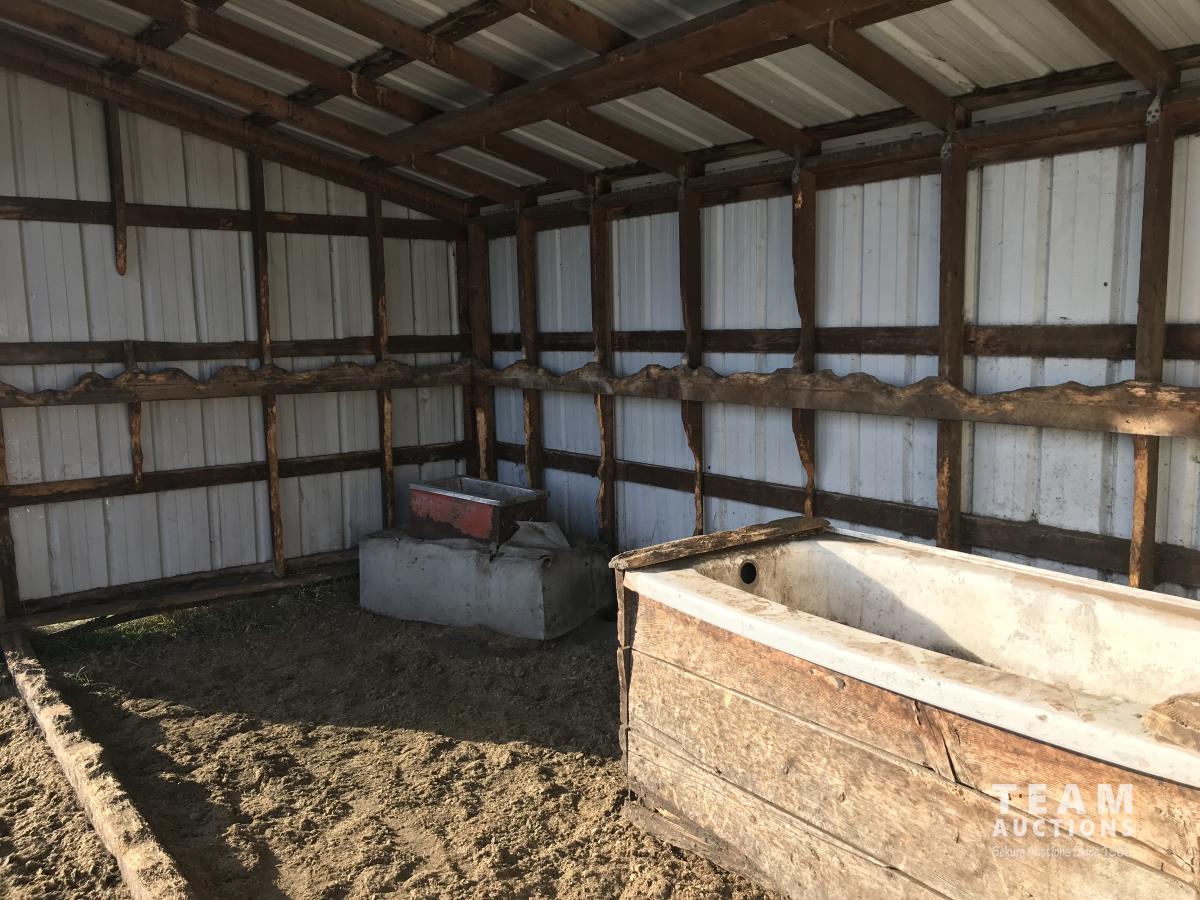 Metal cladding, metal roof, wood frame, bath tub water trough, heated livestock waterer, wooden skid