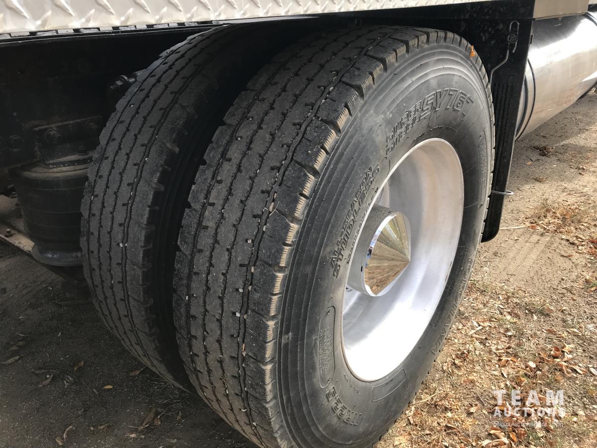 Caterpillar C15, Twin Turbo, 550 HP, engine brake, Eaton Fuller 18 speed transmission, cruise control, tilt & telescopic steering wheel, 60 inch sleeper, HD steel front bumper, 12,600 lb front, super 40,000 rears, differential lock and inner axle lock, 3.91 ratio, front air bags, air ride suspension, aluminum rims, 11R24.5 tires