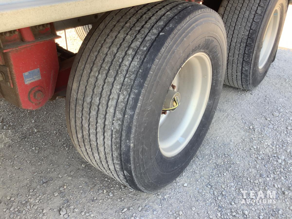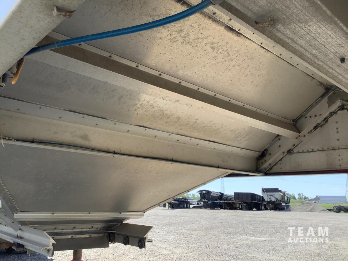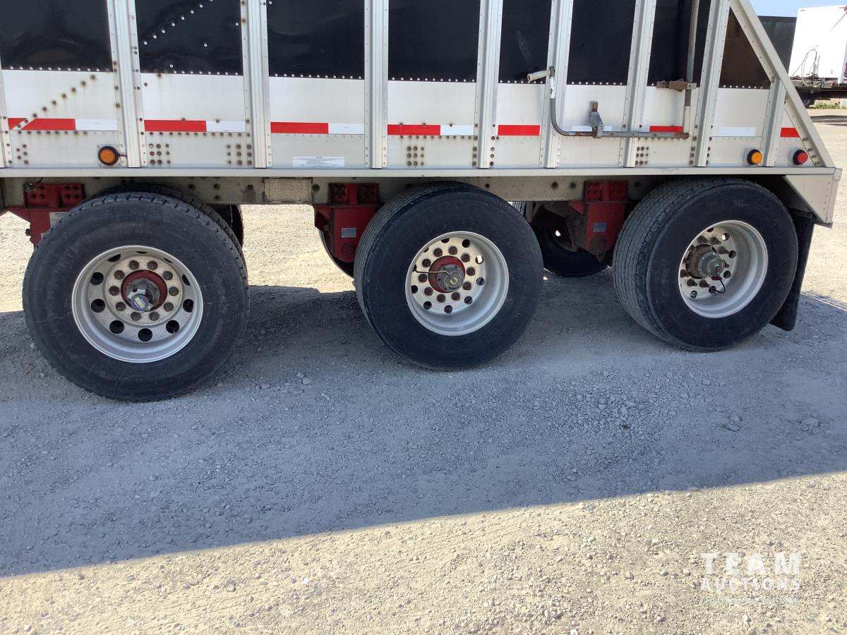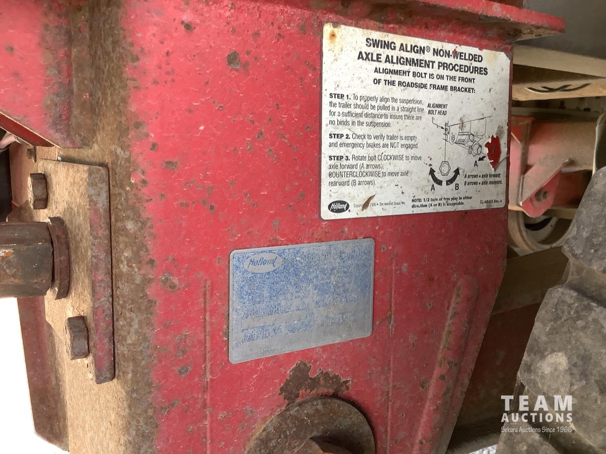 Holland air ride suspension, (2) hopper high ground clearance, 2 speed hopper openers, air vibrators on each hopper, air dump valve and load gauge, roll tarp, 455/55R22.5 super single tires on aluminum rims