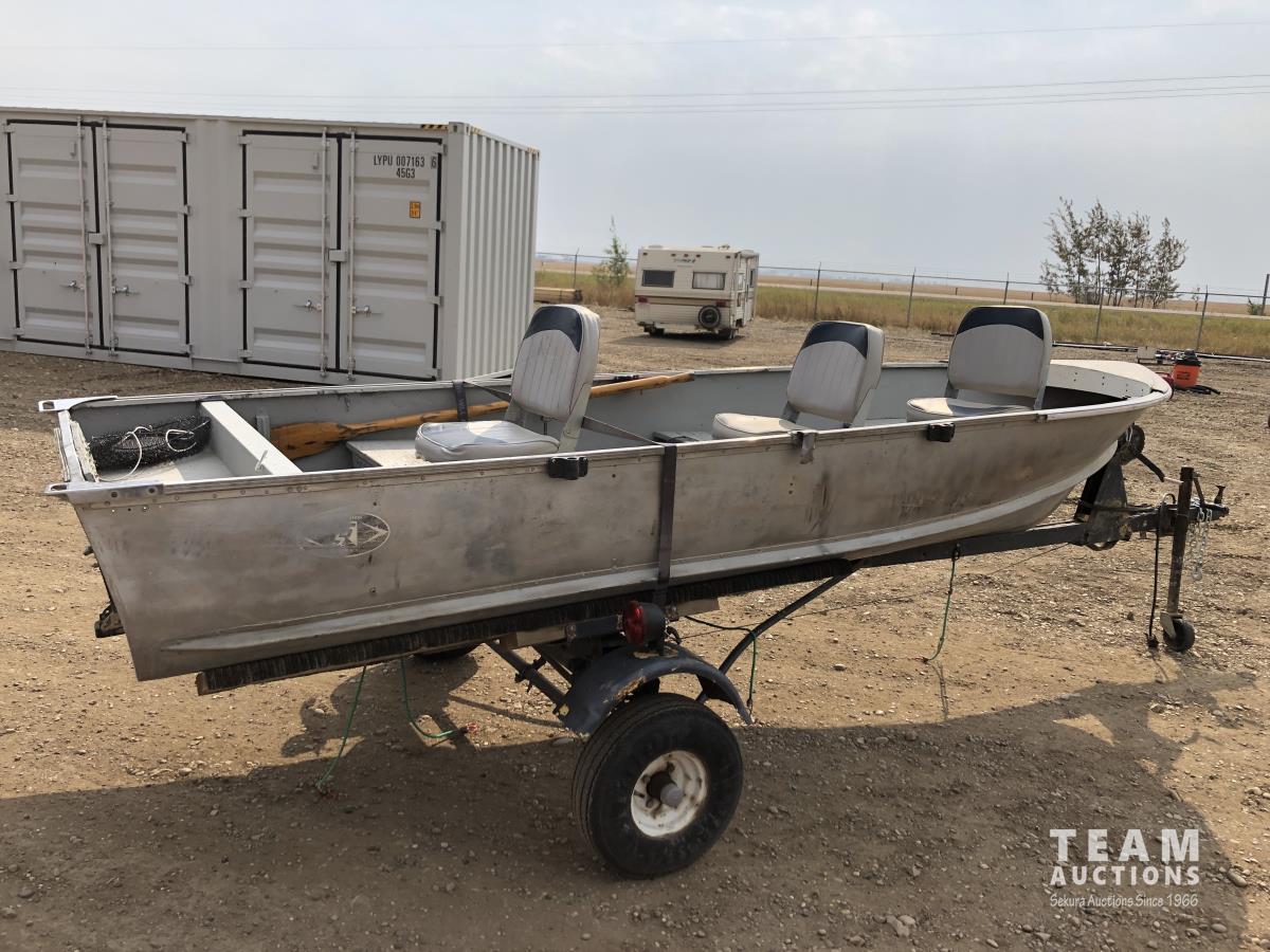 211 Sears 14 Ft Aluminum Boat w/ 1965 Calkins S/A Trailer