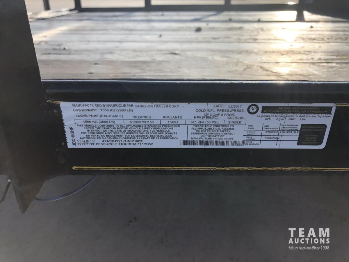 243 2017 Carry On 12 Ft S/A Utility Trailer