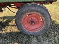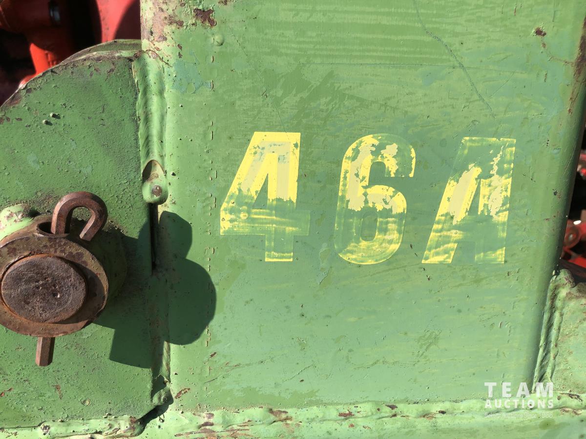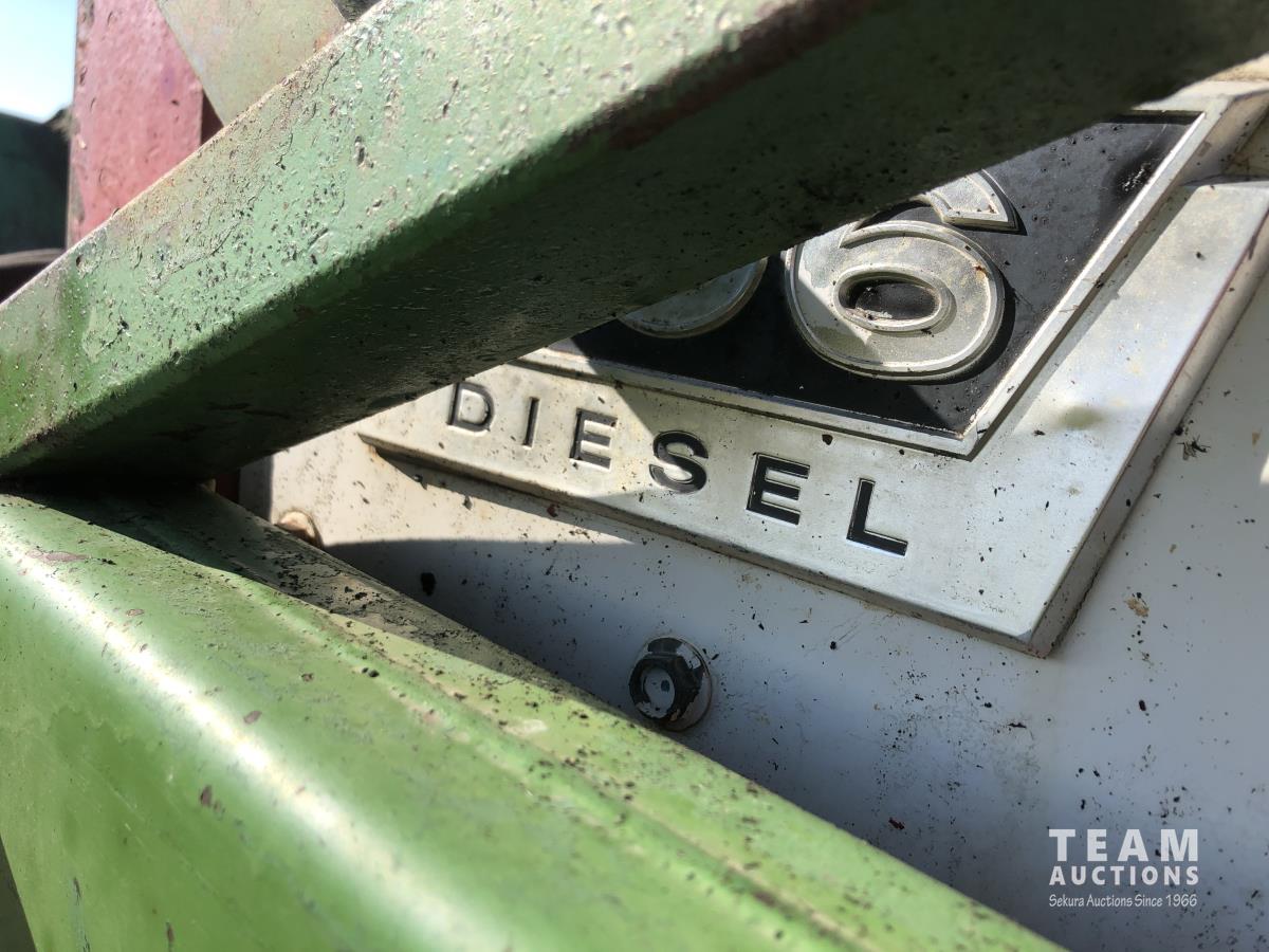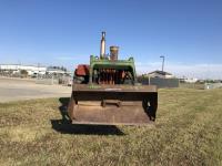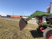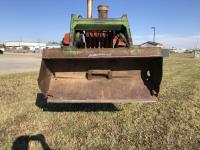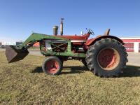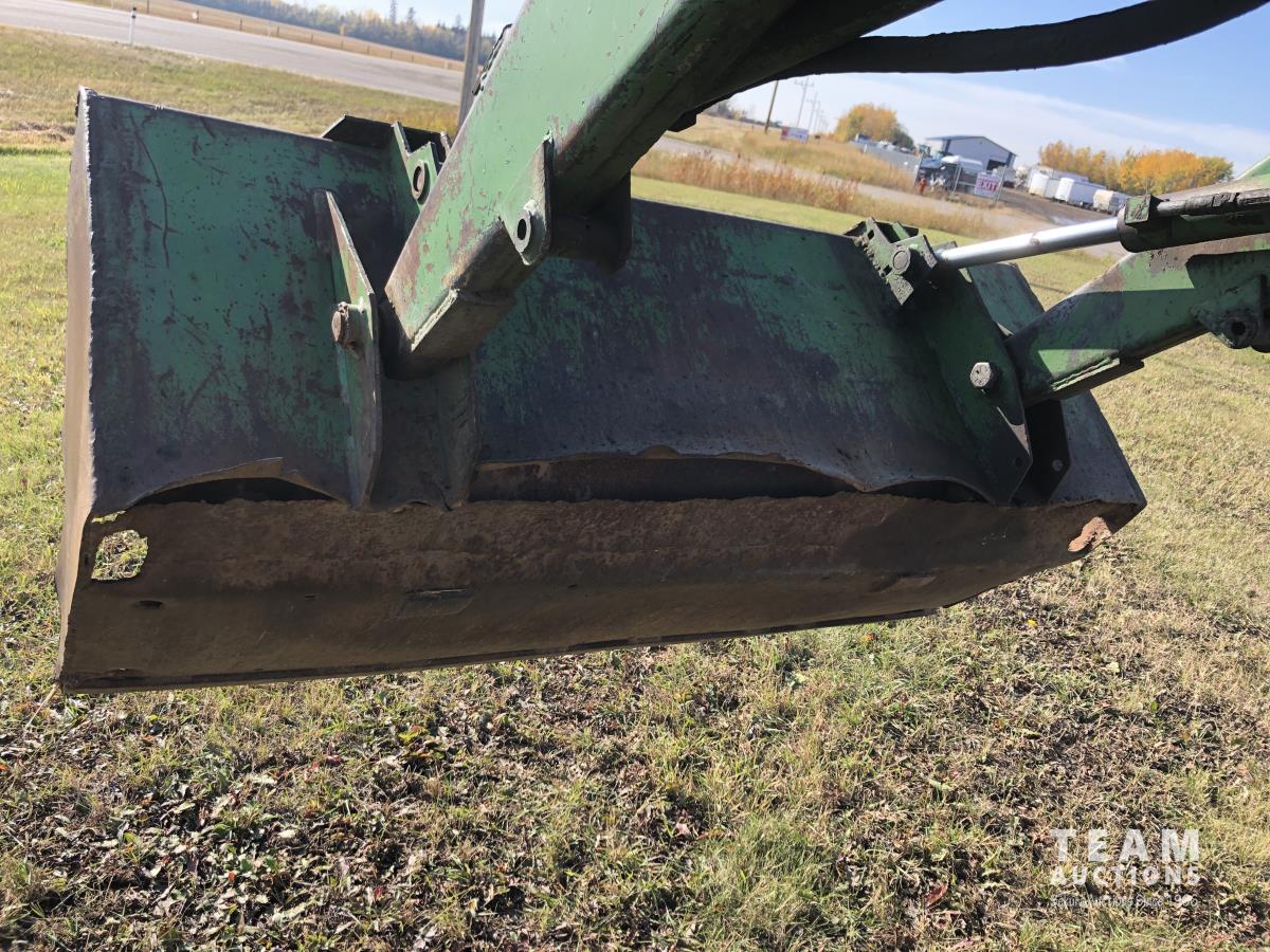 6 cylinder diesel, 8-speed unsynchronized, John Deere loader, 5 ft bucket, 540/1000 PTO, 7.50-20 front tires, 23.1-43 rear tires, hrs unknown