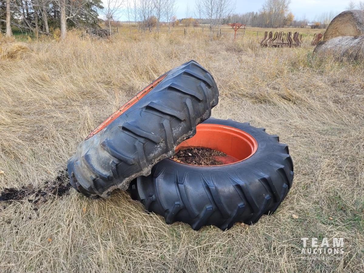 12-speed partial power shift, 8-speed power shift, 120 HP, 108 PTO HP, 540 PTO, (2) hydraulic outlets, 14L-16.1 front tires @ 70%, 18.4 38 rear tires @ 40%, 18.4 38 duals @ 50%, includes extra set of tires & Ezee On loader