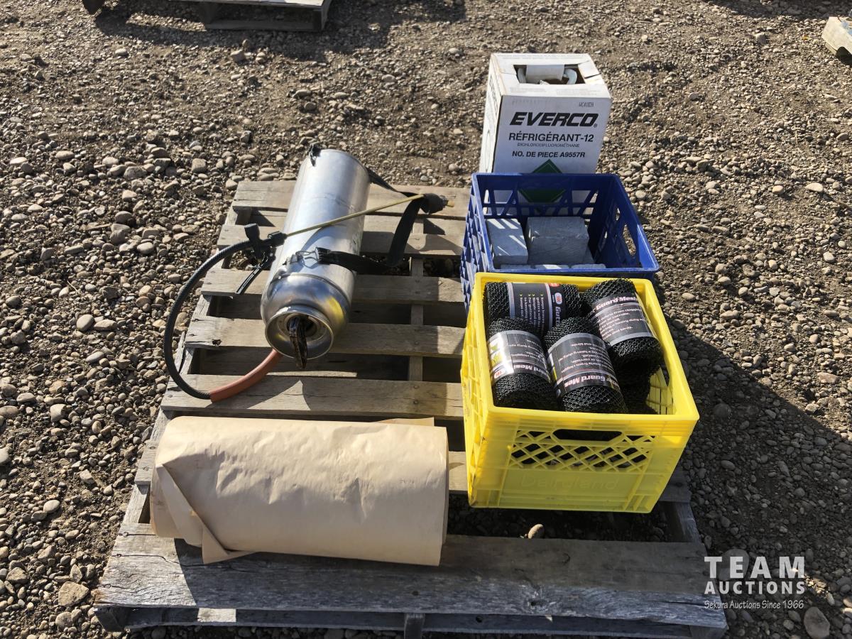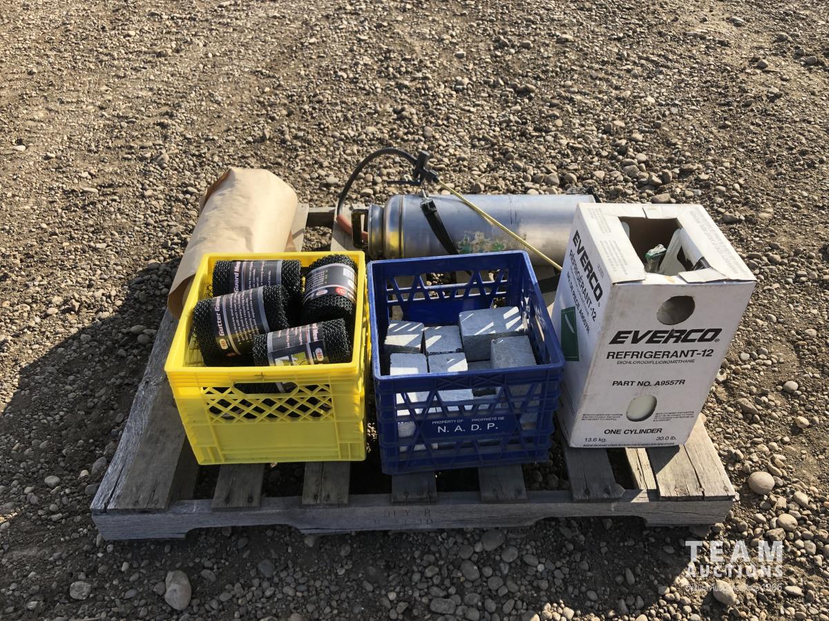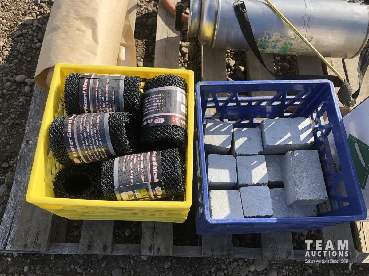 Roll of meat wrap, spray canister, soap stone, refrigerant, box of gutter guard
