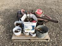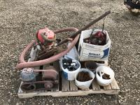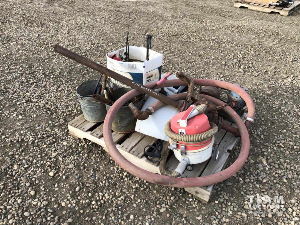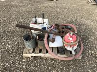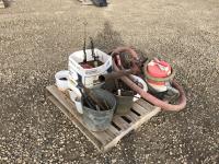 Assortment of fittings, small shop vac, small pump & hose