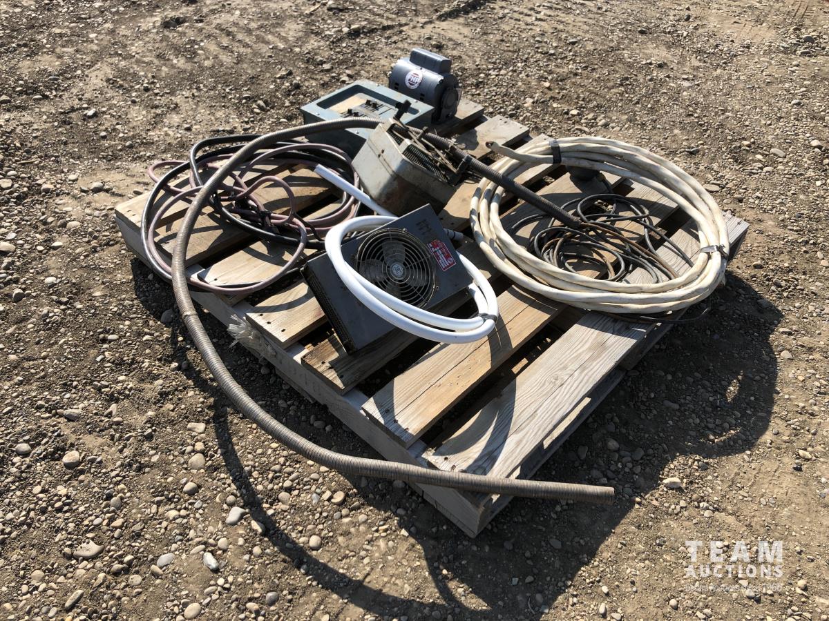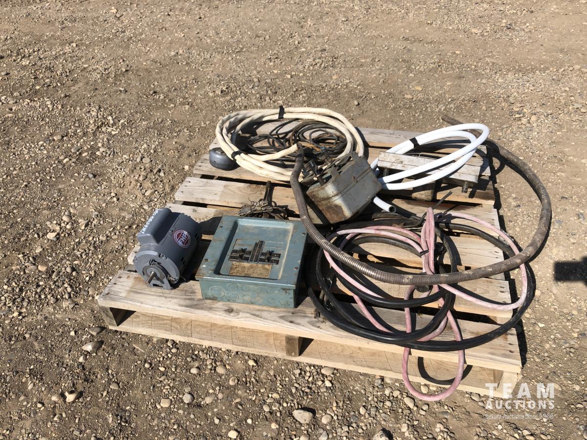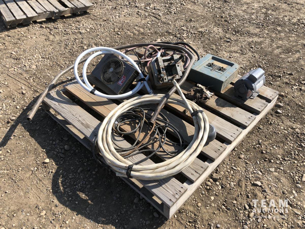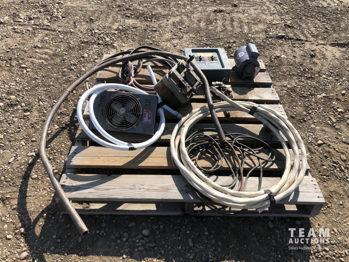 Miscellaneous wire, breaker box, electric 1/4 HP motor, electric fans