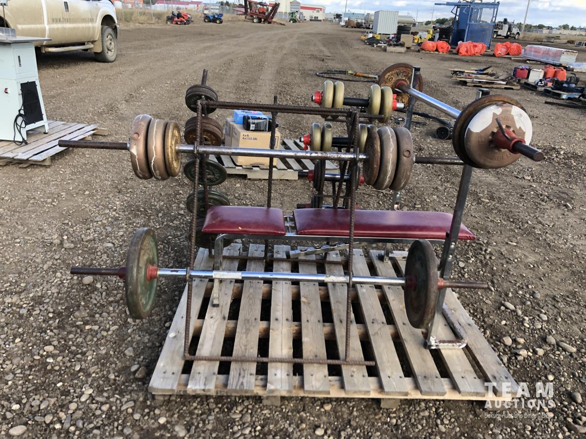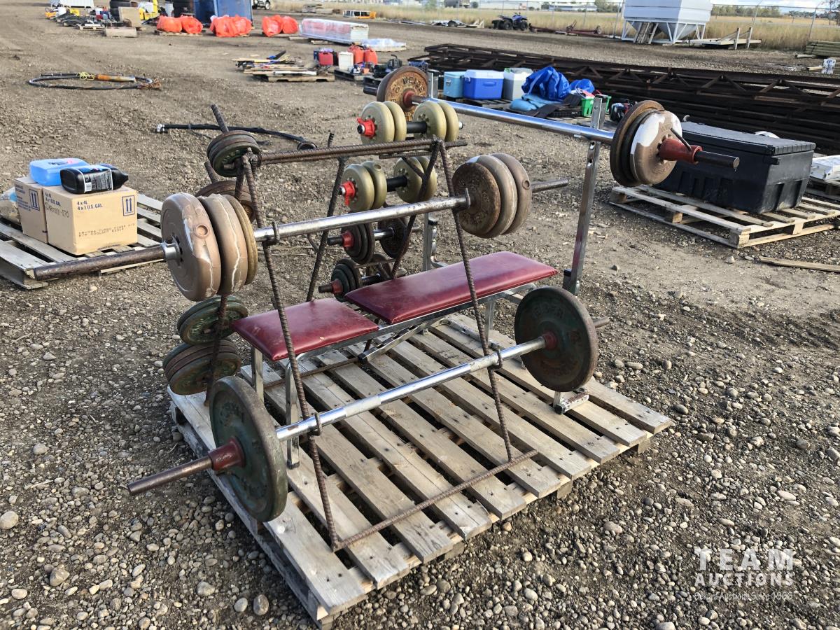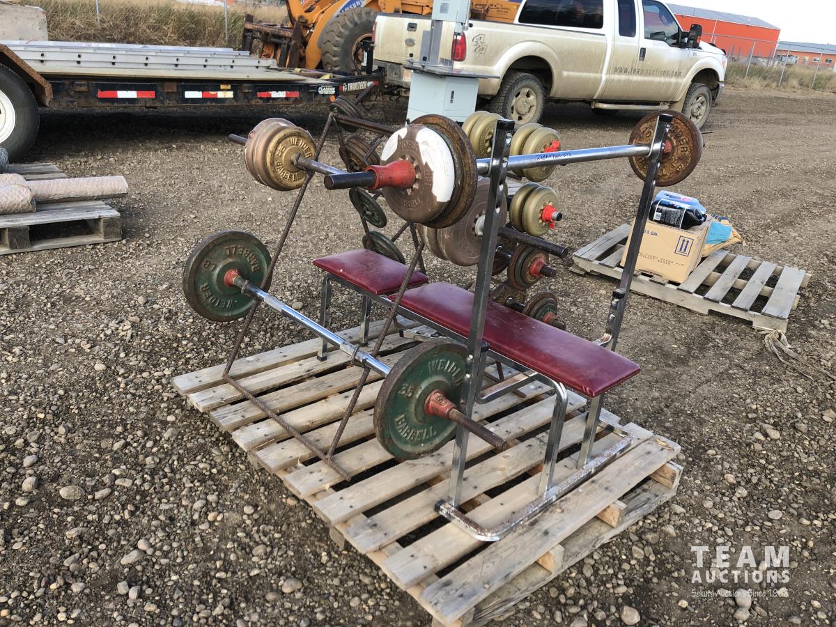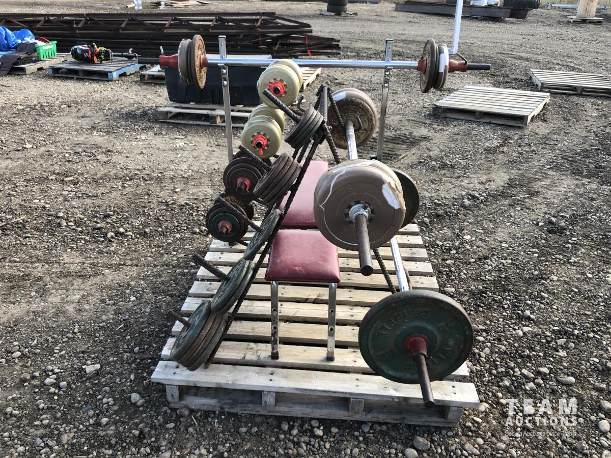 Weight bench, bar, weights & stand