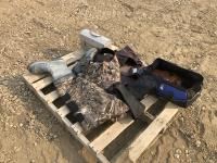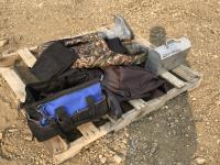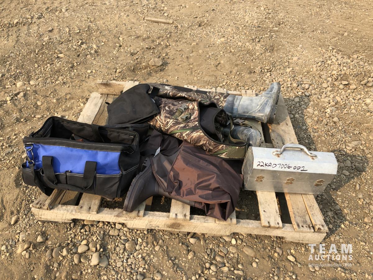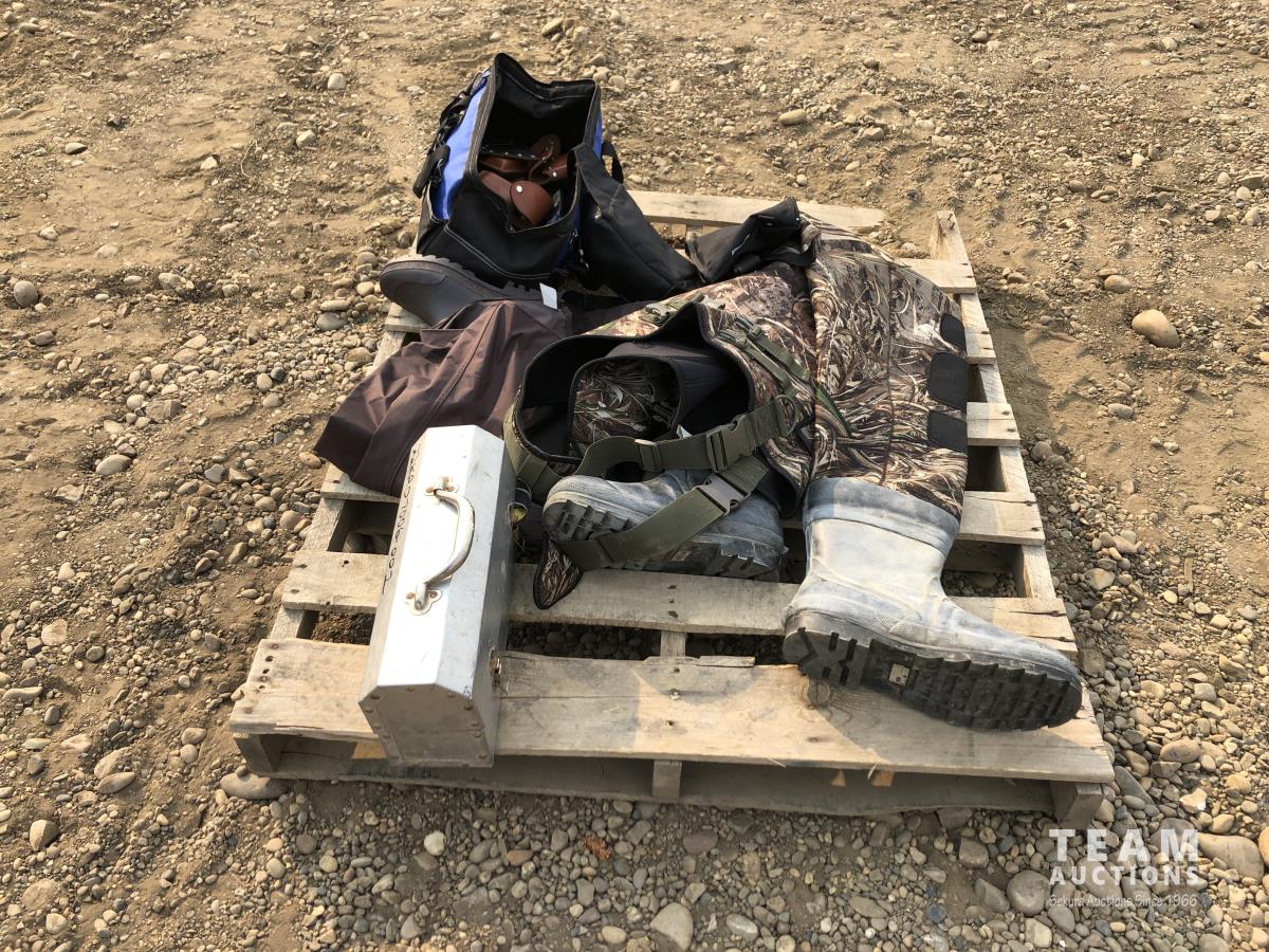 Size 13 chest waders, miscellaneous knife holders, size 12 leg waders