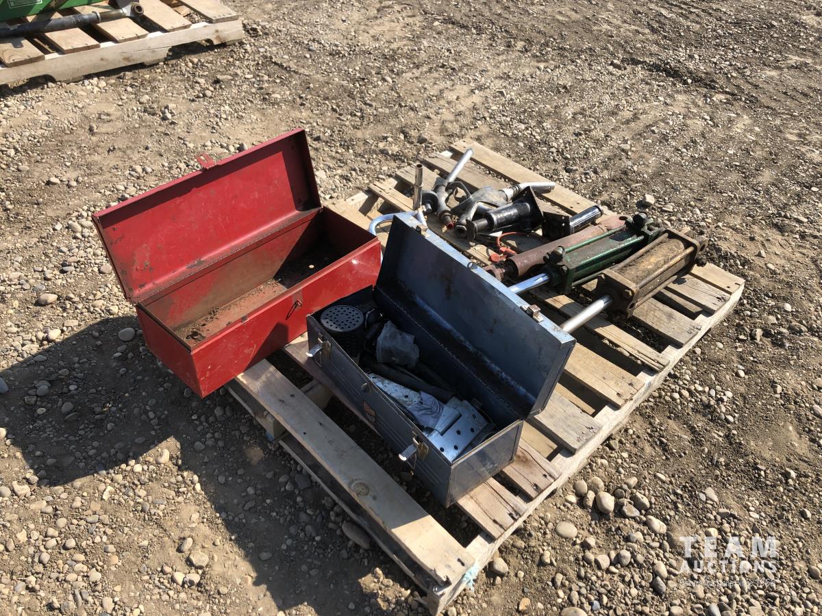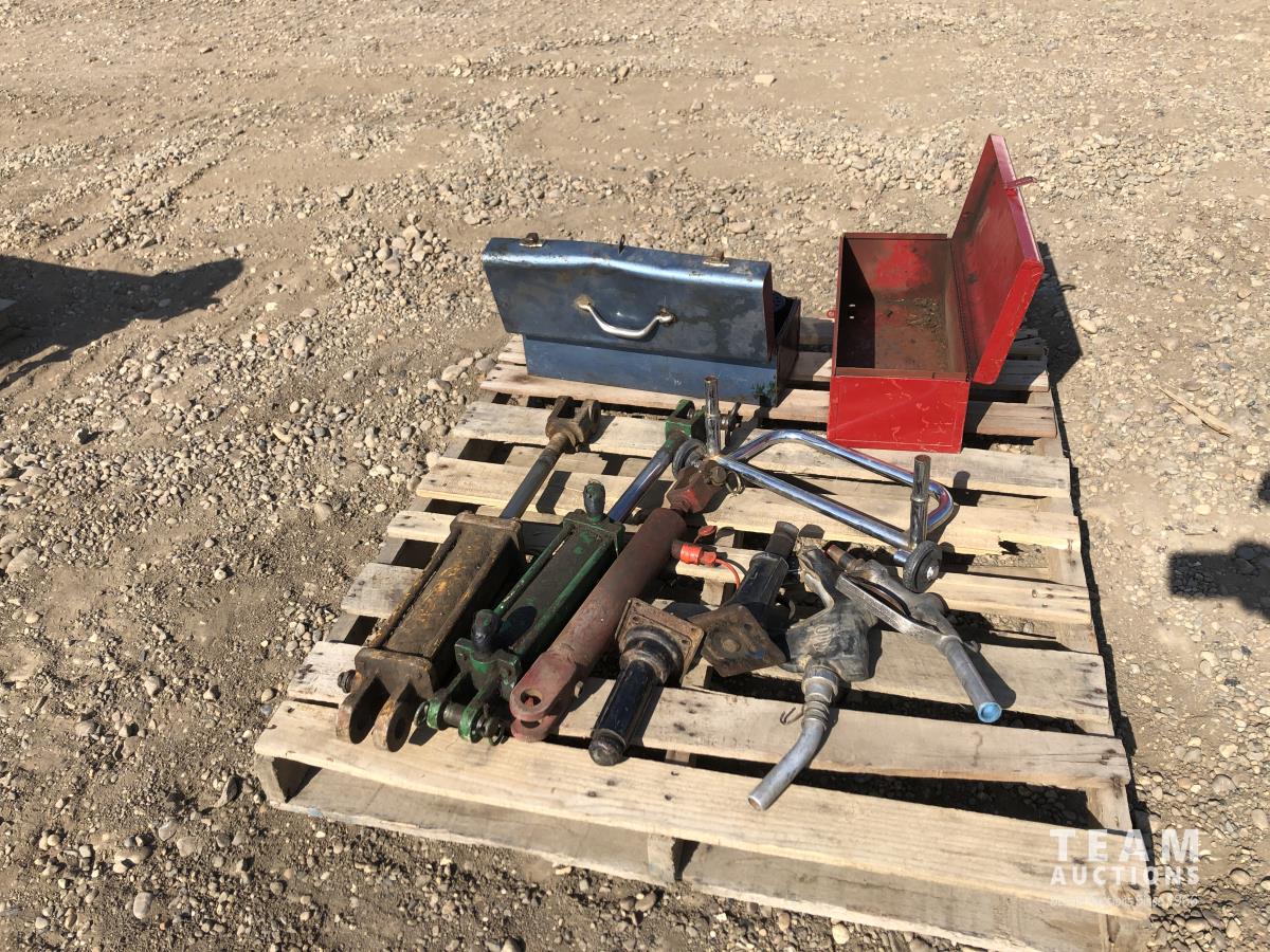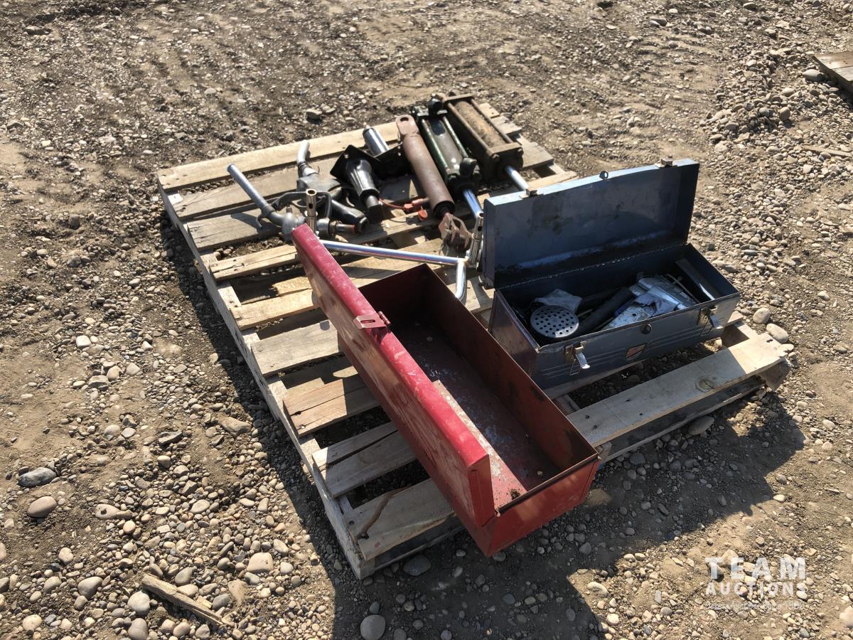 Hydraulic rams, gas nozzle, tacks, tool boxes, miscellaneous hinges