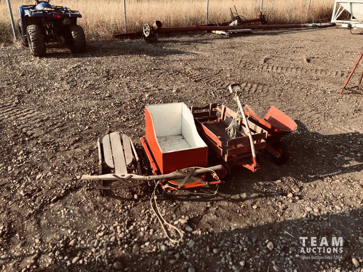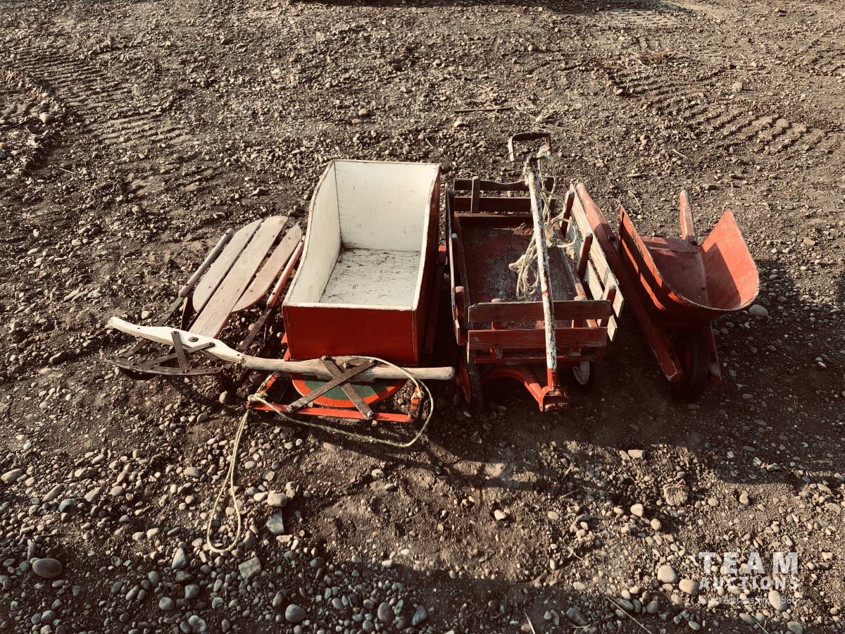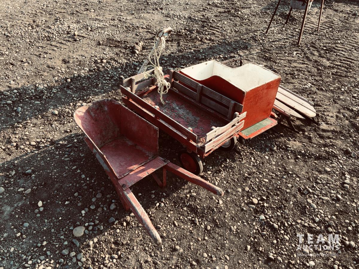 50 Wagon, Wheel Barrow & (2) Sleighs