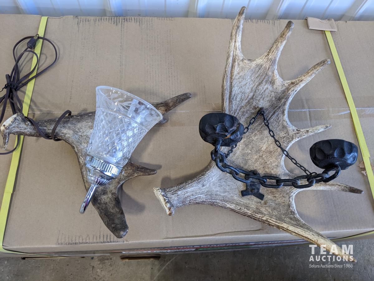 2007 (2) Vintage Chairs and (2) Moose Horns Lights