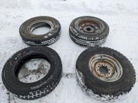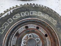 Toyo 235/85R16 on 8 bolt rim, Michelin 255/70R16 on 5 bolt rim, Firestone 235/85R16, Goodyear 225/70R19.5