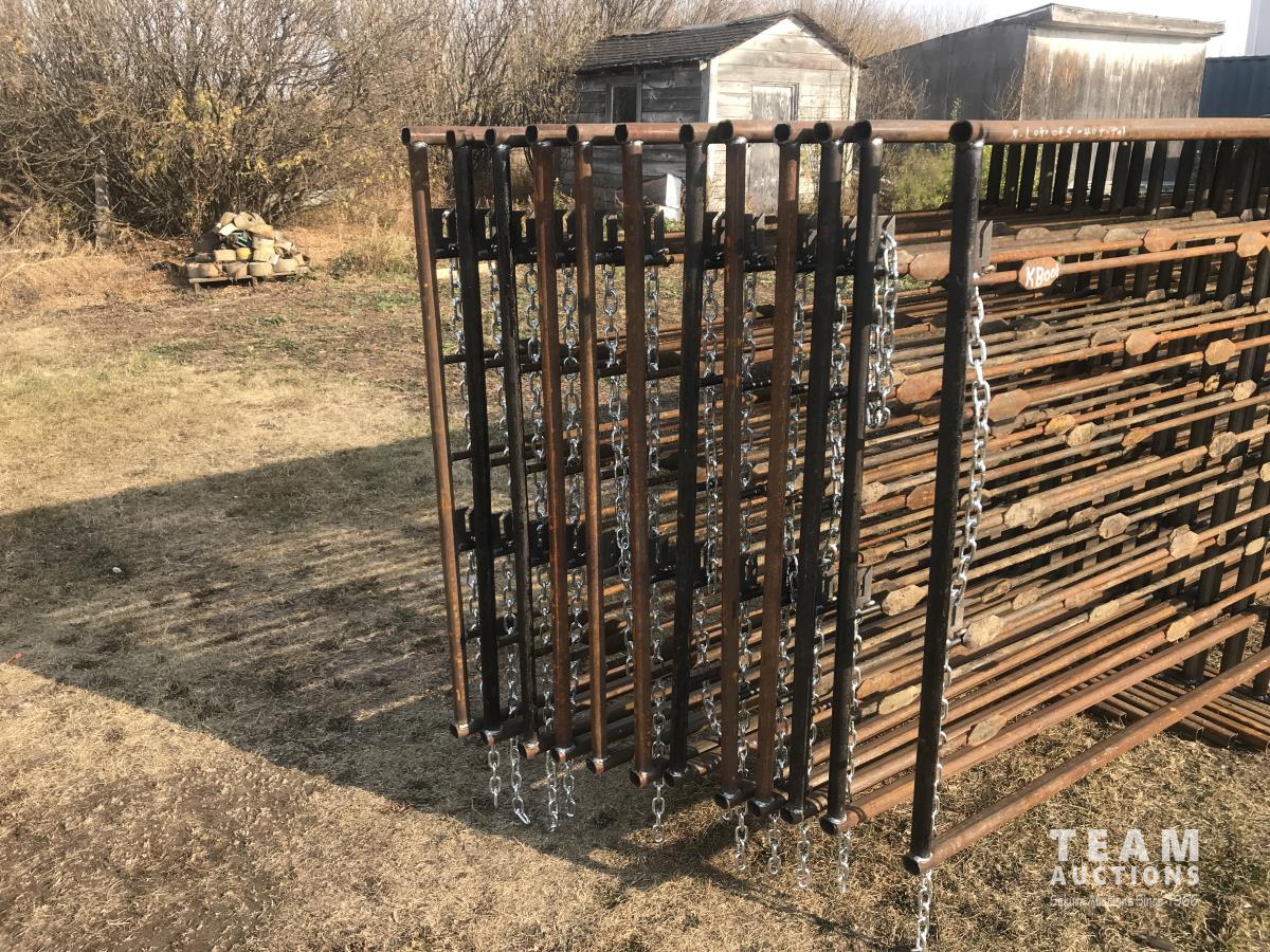 57 inch high, 1-1/2 inch pipe frame, (5) sucker rod rails, (2) chrome 25 inch connector chains on one end