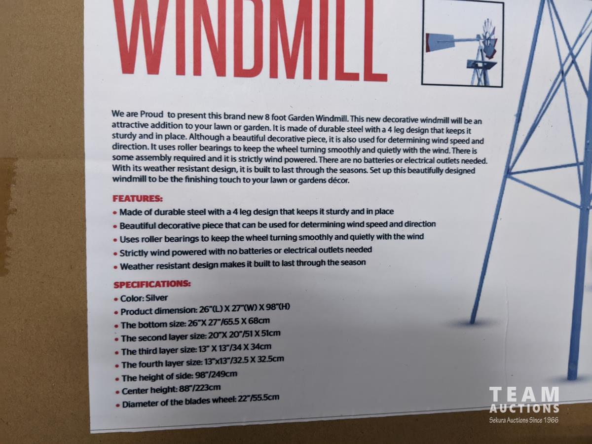 1611 8 Ft Metal Garden Windmill (Unused)
